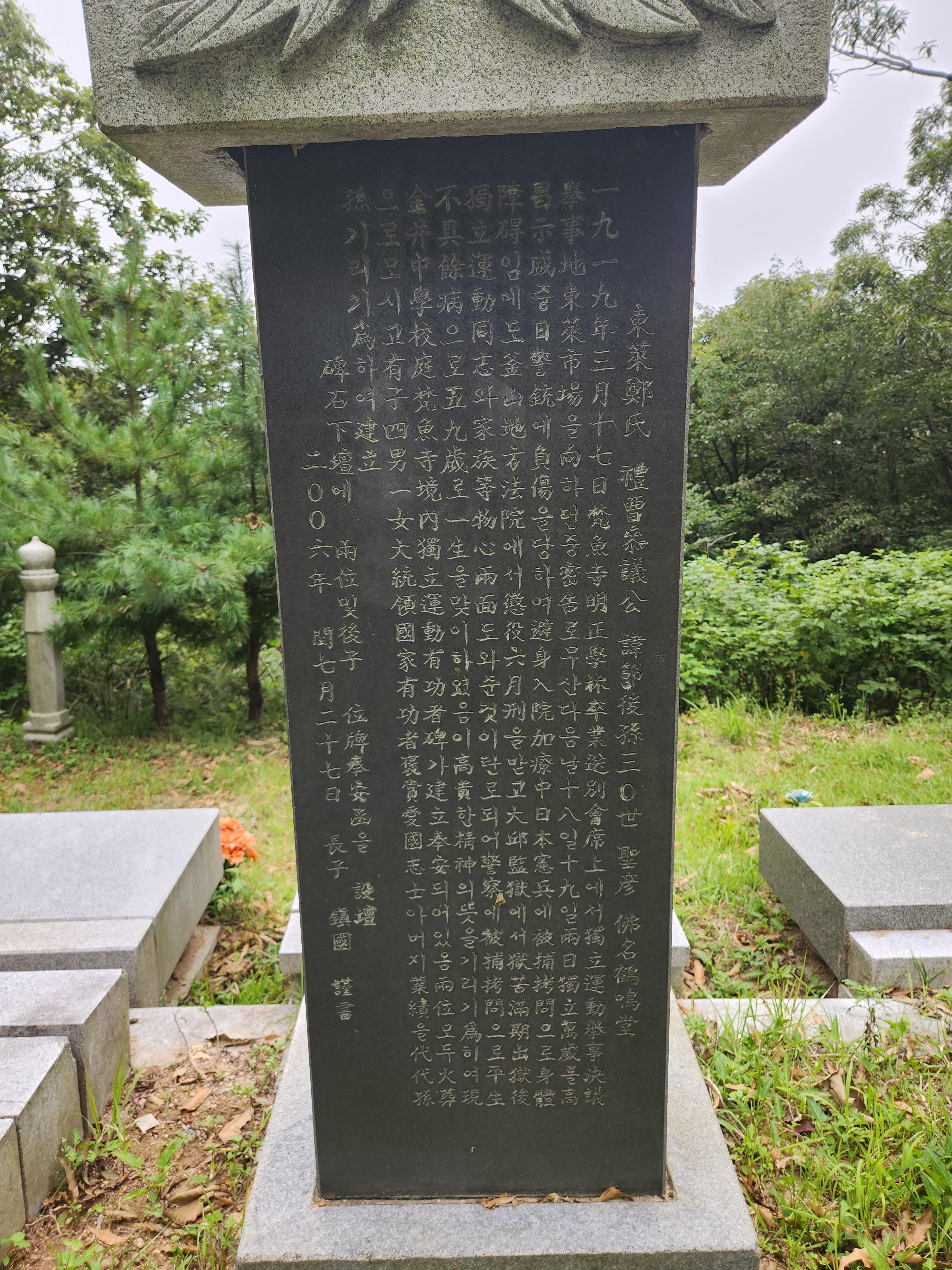 3.1독립운동유공자 동래 정공(東萊 鄭公) 휘(諱) 성언(聖彦) 지(之) 비(碑) |