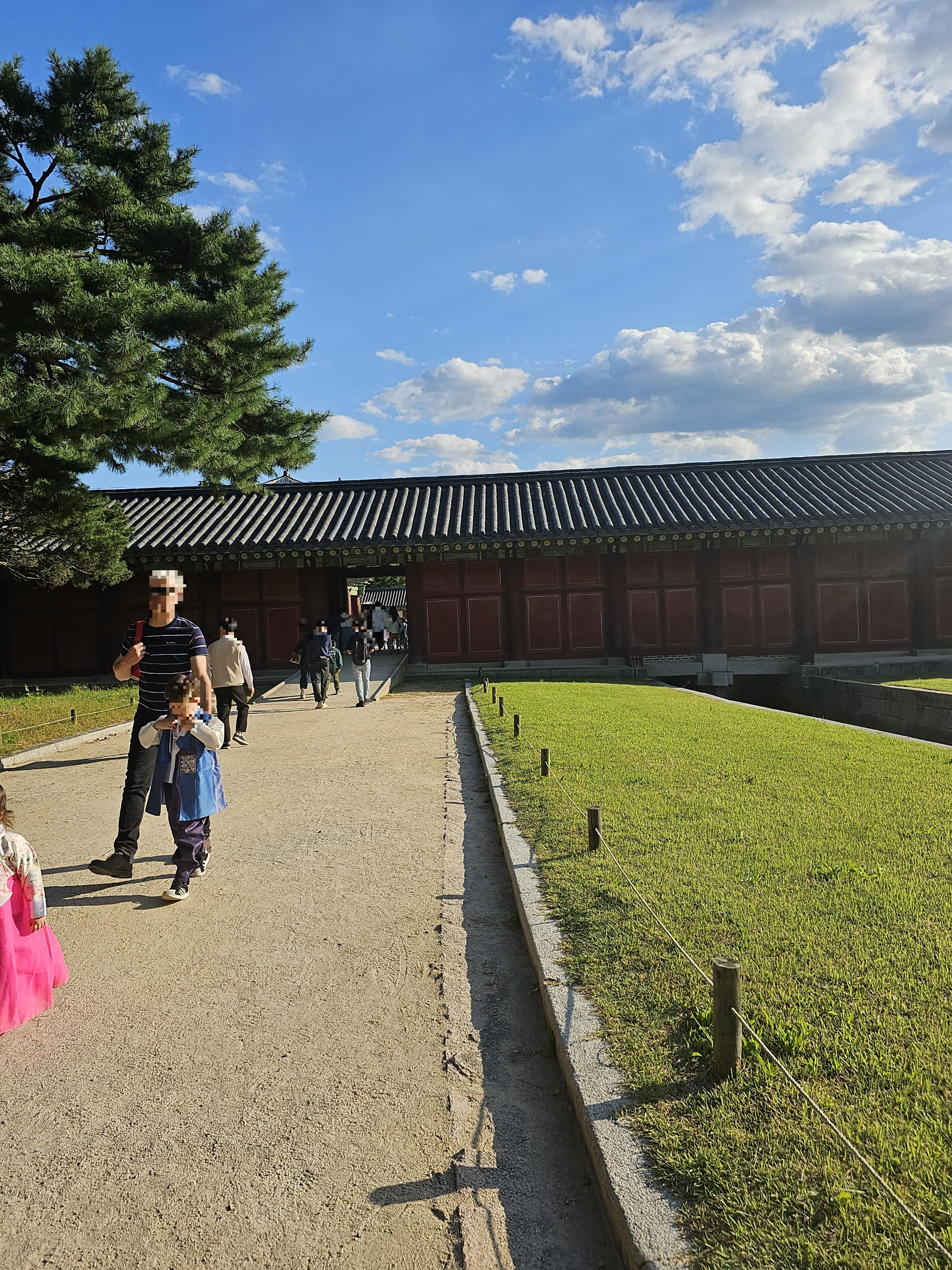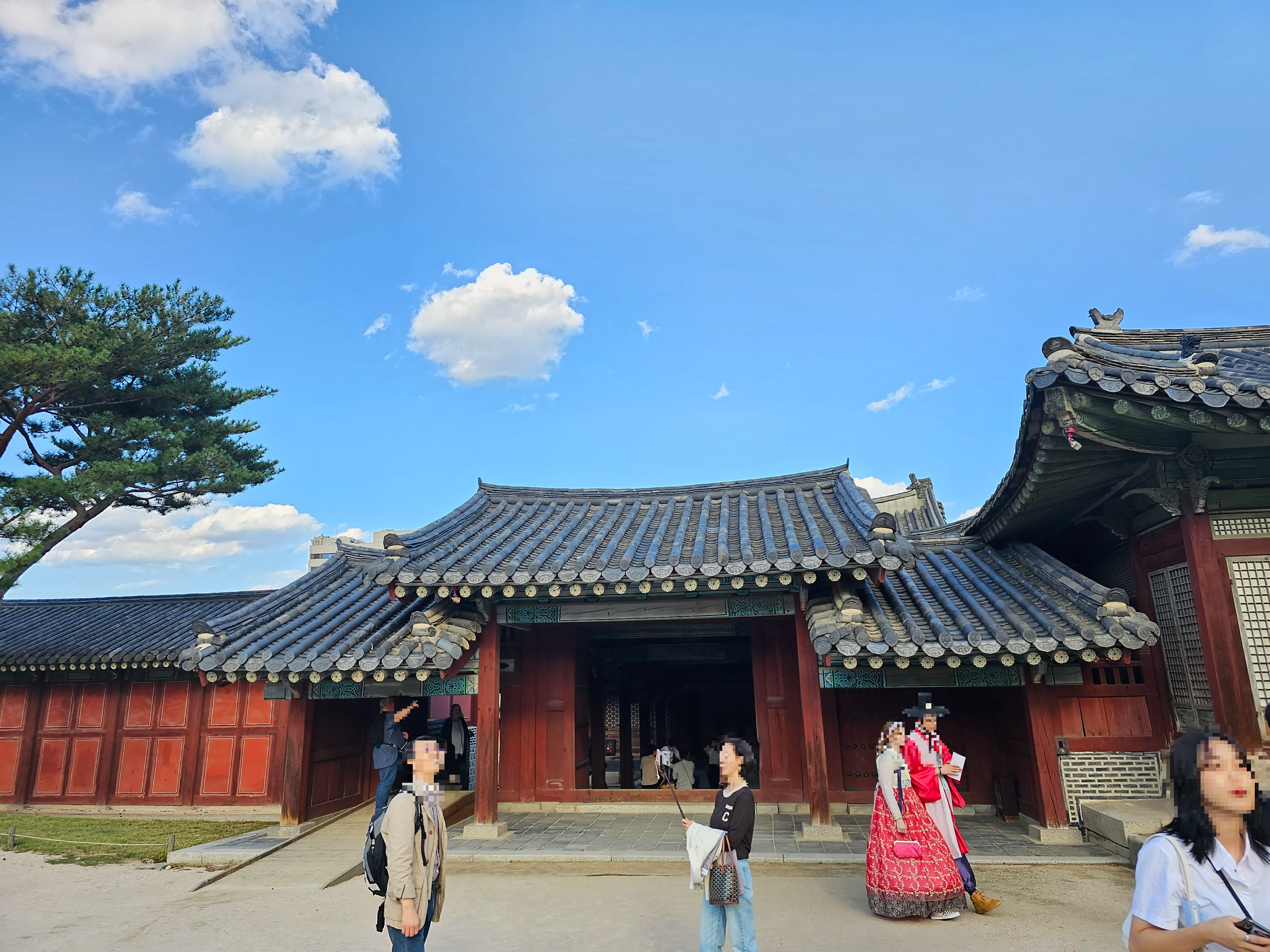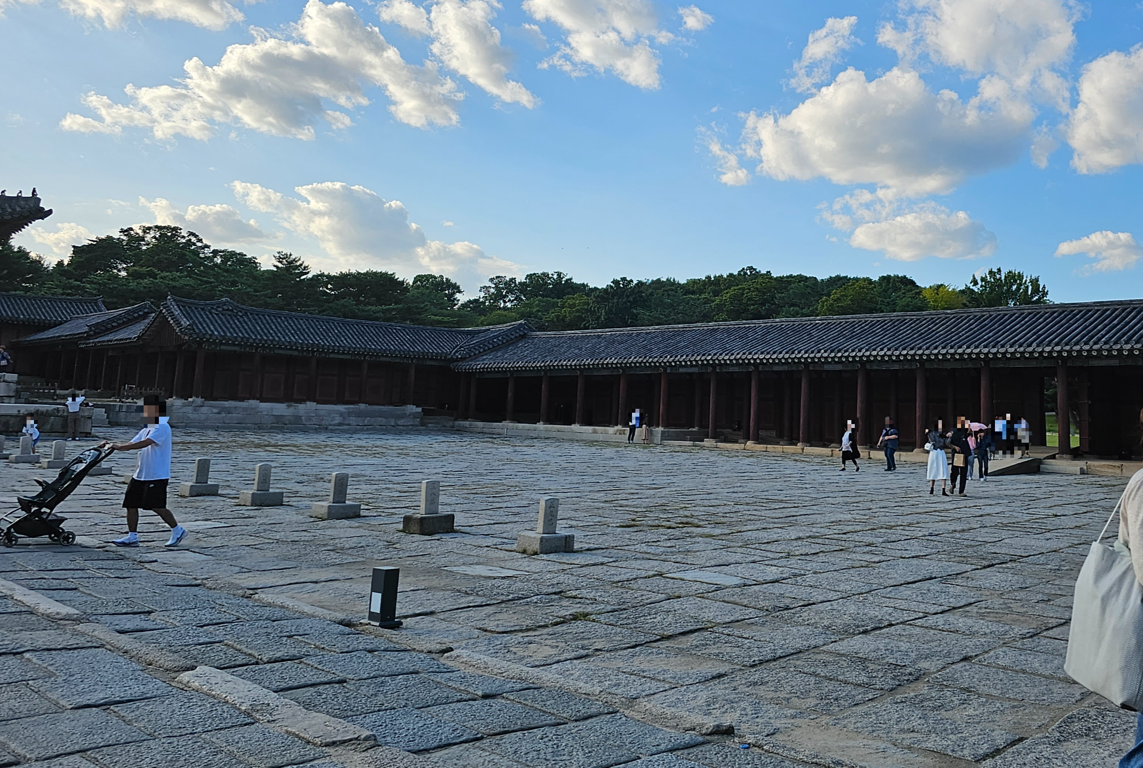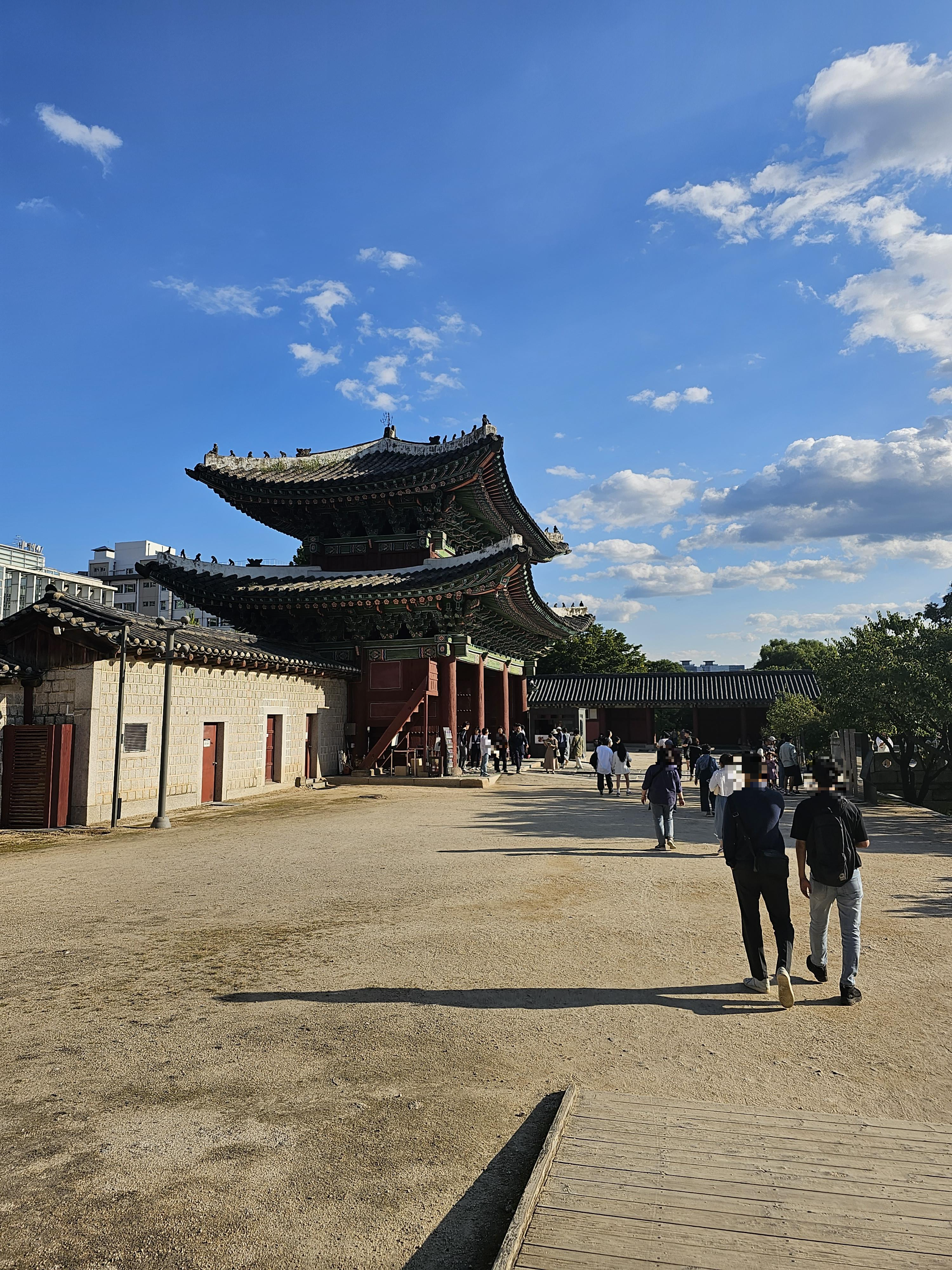 뒤쪽은 다른 건물로 연결되는 복도를 만들어서 통행의 편리함을 추구했죠. 명정문과 행각이 조정을 둘러싸고 있으며, 행각들은 왕실 친위부대의 주둔지나 왕실의 초상을 치르기 위한 재실로도 쓰였다고 합니다.