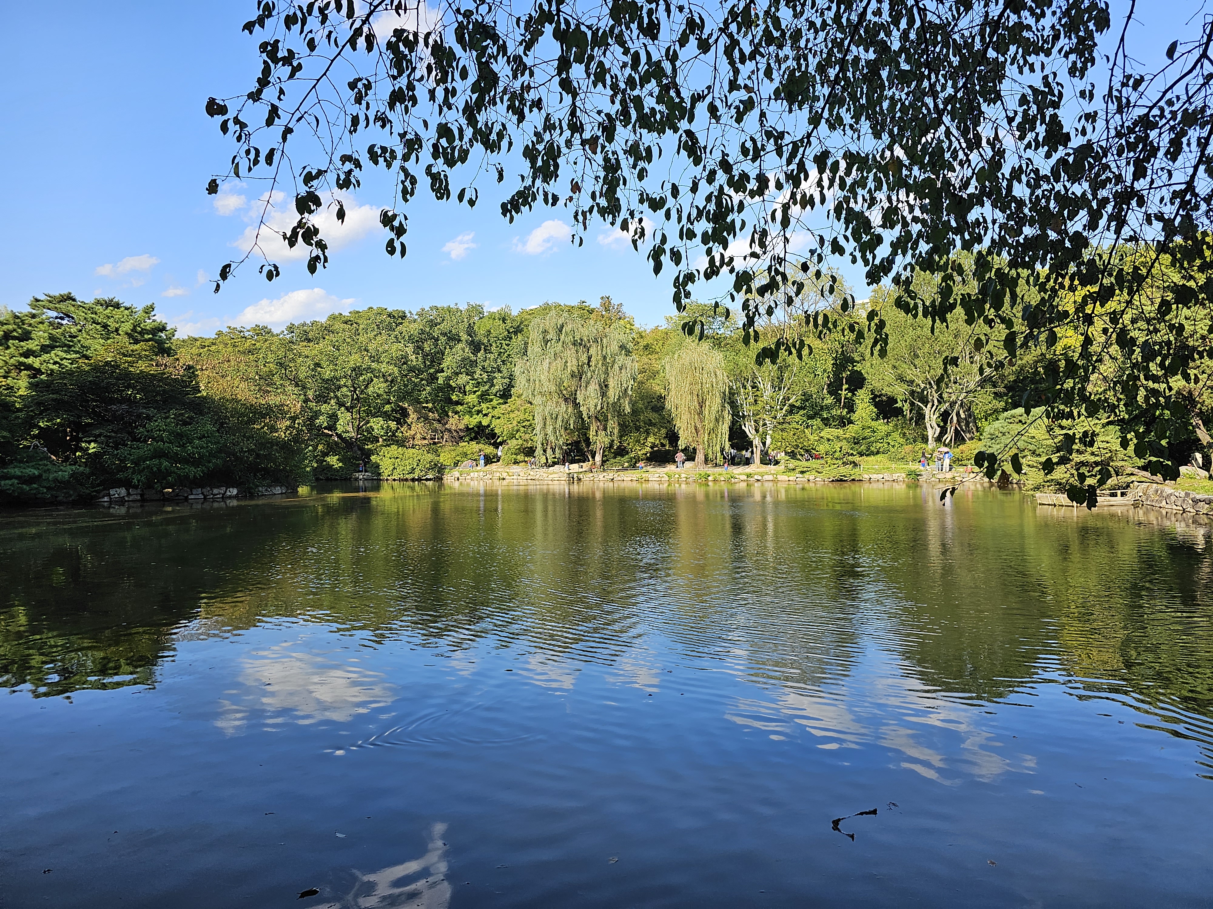 이제 춘당지(春塘池)로 갑니다. 춘당지(春塘池)는 창덕궁쪽 절벽인 춘당대와 짝을 이룬 엿못이었으나 지금은 담장으로 나뉘어 있습니다. 현재의 소춘당지가 원래의 춘당지이고 대춘당지는 1909년에 내농포(內農圃, 임금과 왕비가 각기 농사와 양잠을 체험할 수 있도록 궁궐 안에 둔 논과 뽕밭)에 속한 11개 논을 하나의 연못으로 만든 것이라고 합니다.