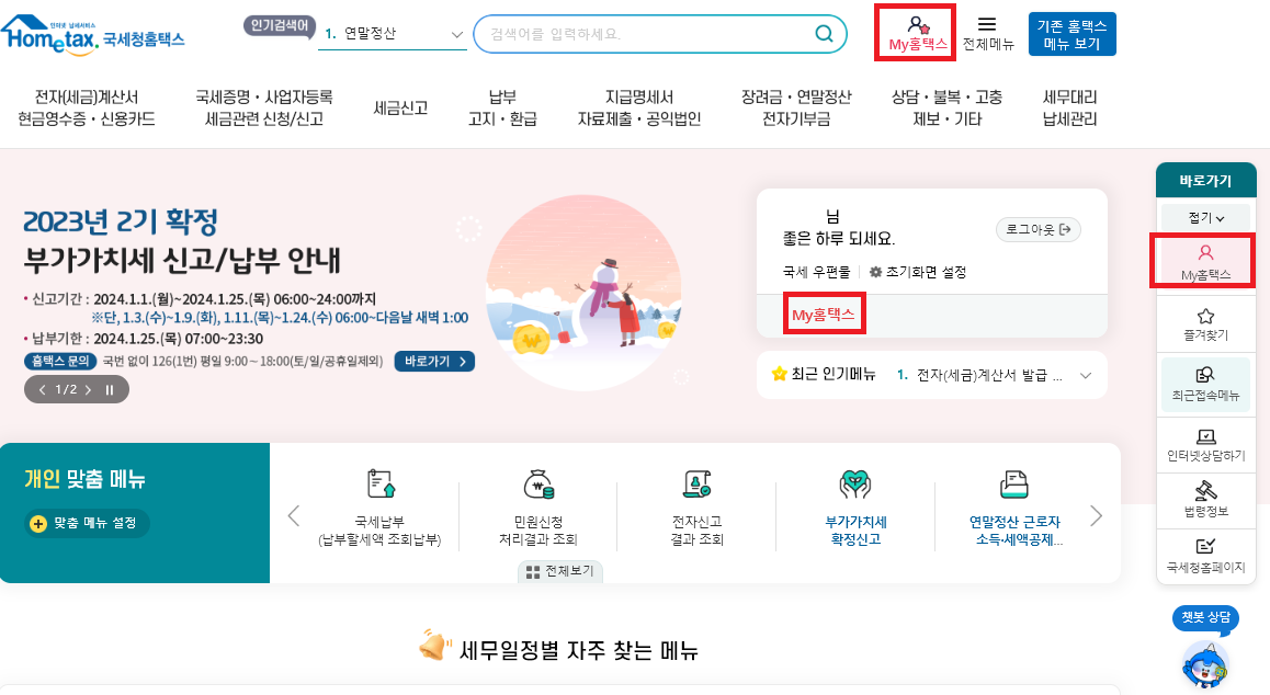 그리고 [My홈택스]에 접속해주세요~