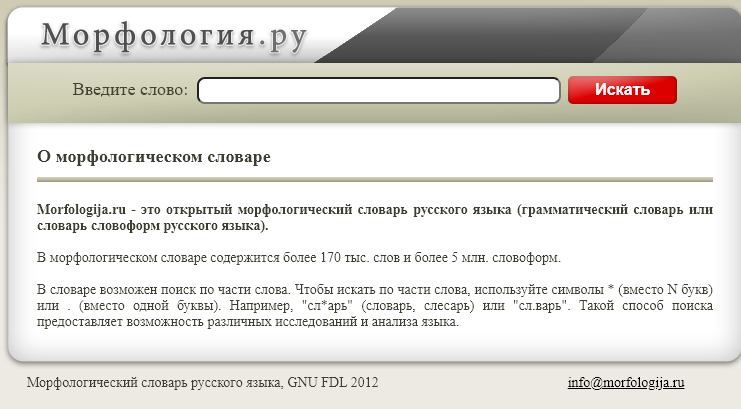 О морфологическом словаре Morfologija.ru - это открытый морфологический словарь русского языка (грамматический словарь или словарь словоформ рус