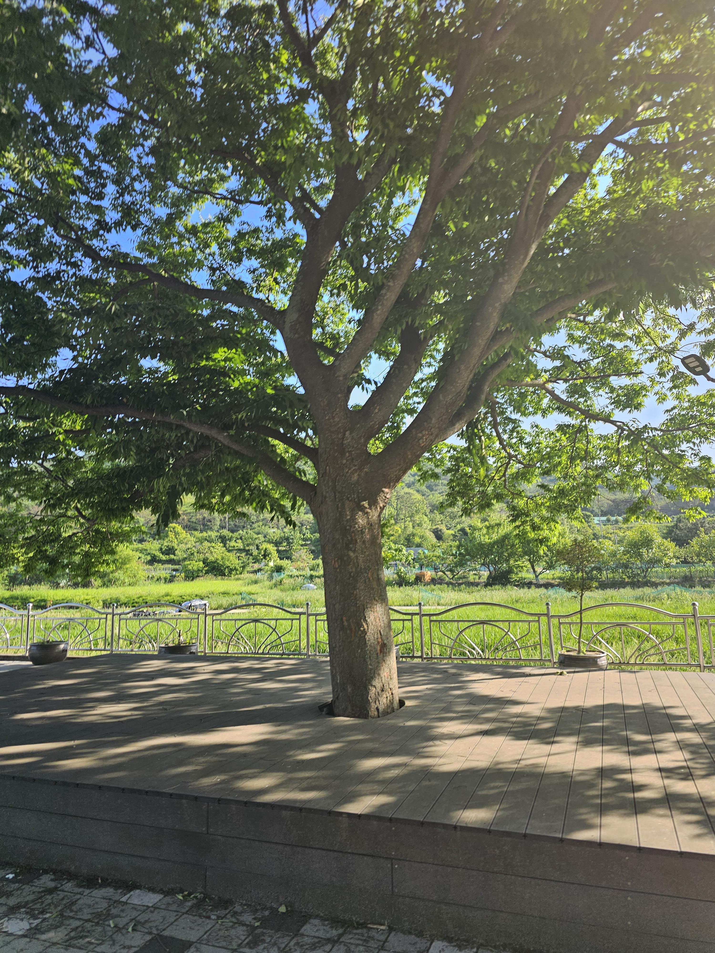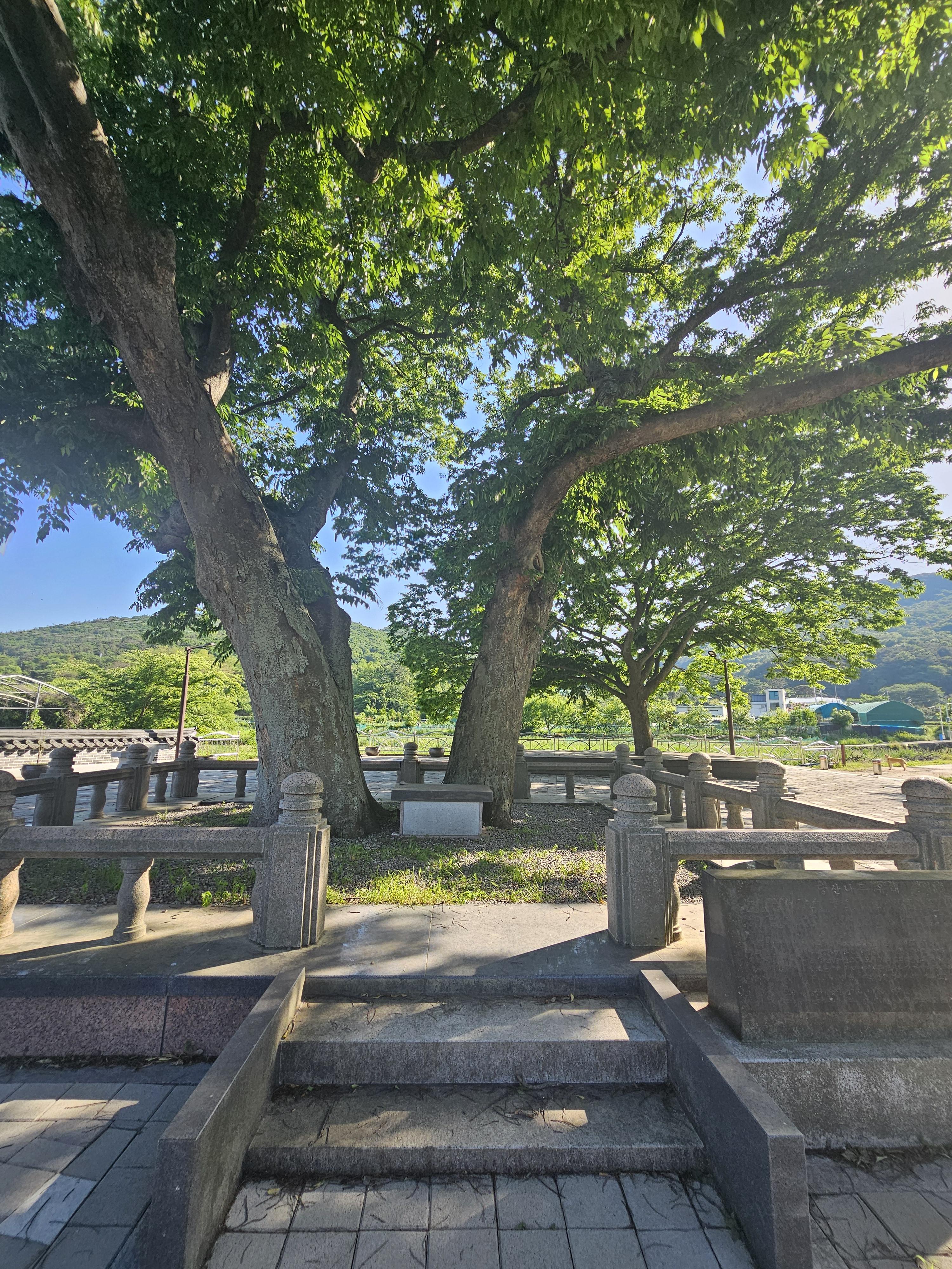 그 옆에는 이렇게 방문객이 쉴 수 있는 공간과 그 공간을 덮고 있는 나무도 있구요. 한쪽엔 식수대도 있습니다만, 방문했던 24년 5월 19일에는 물이 나오지 않았습니다.