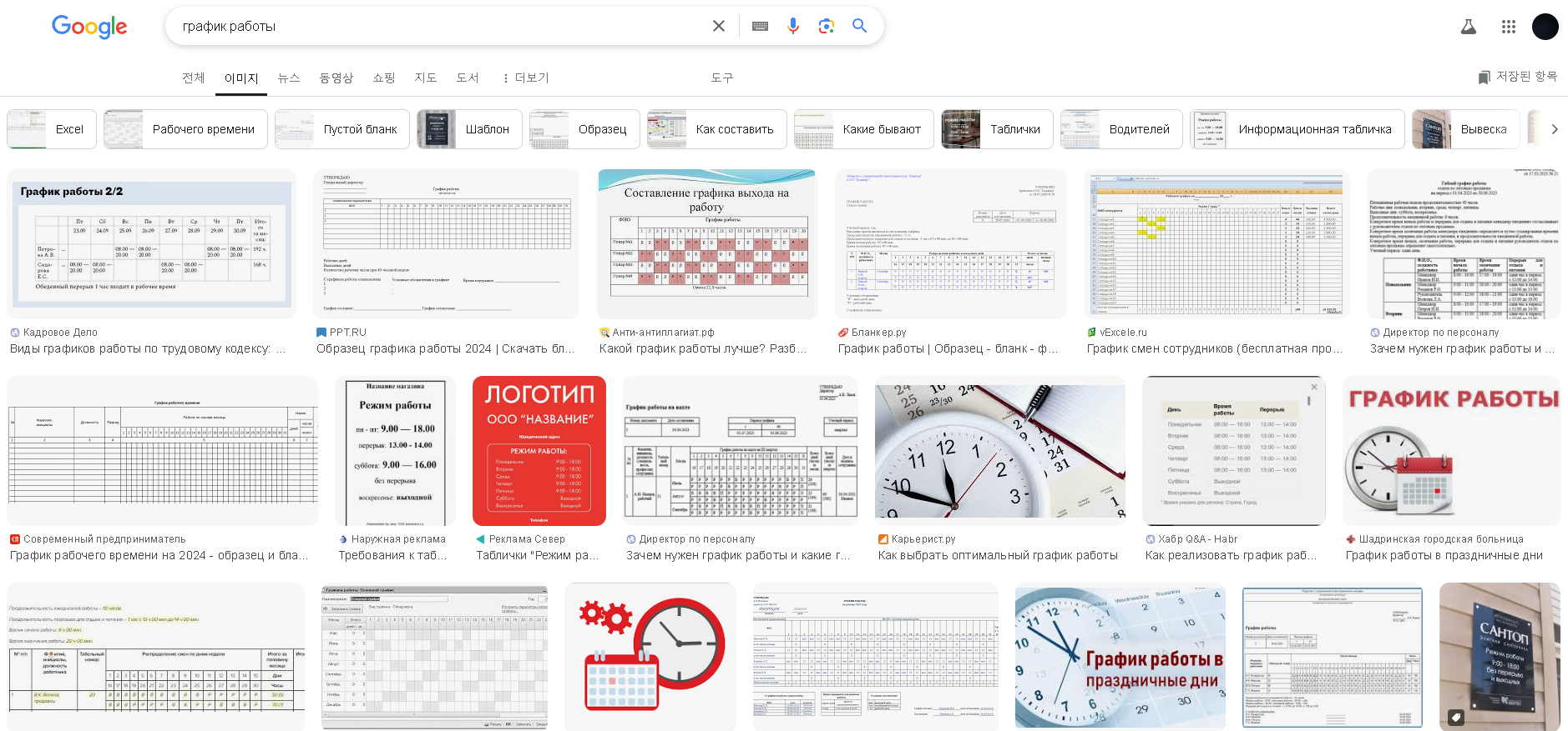 직역하면 '업무 그래프'라는 뜻의 график работы [ㄱ라핔 러보띄]는 '일주일 간의 자유 시간 및 근무 시간을 표시한 시간표'를 말합니다. 한국어로는 '영업시간' 정도로 표현할 수 있겠네요.