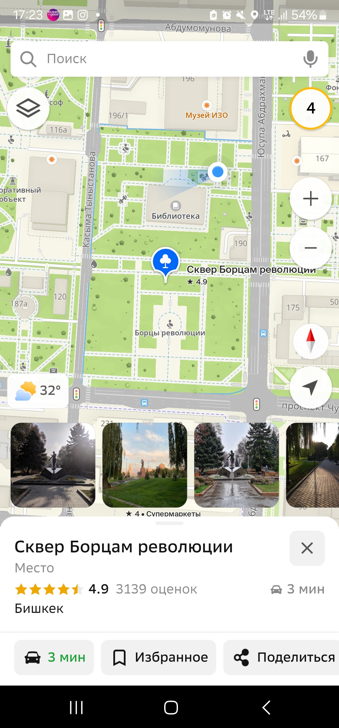 키르기스스탄 비슈케크의 예술박물관 남쪽, 오페라발레극장 서쪽에 혁명투사소공원(Сквер Борцам революции)이 있습니다.