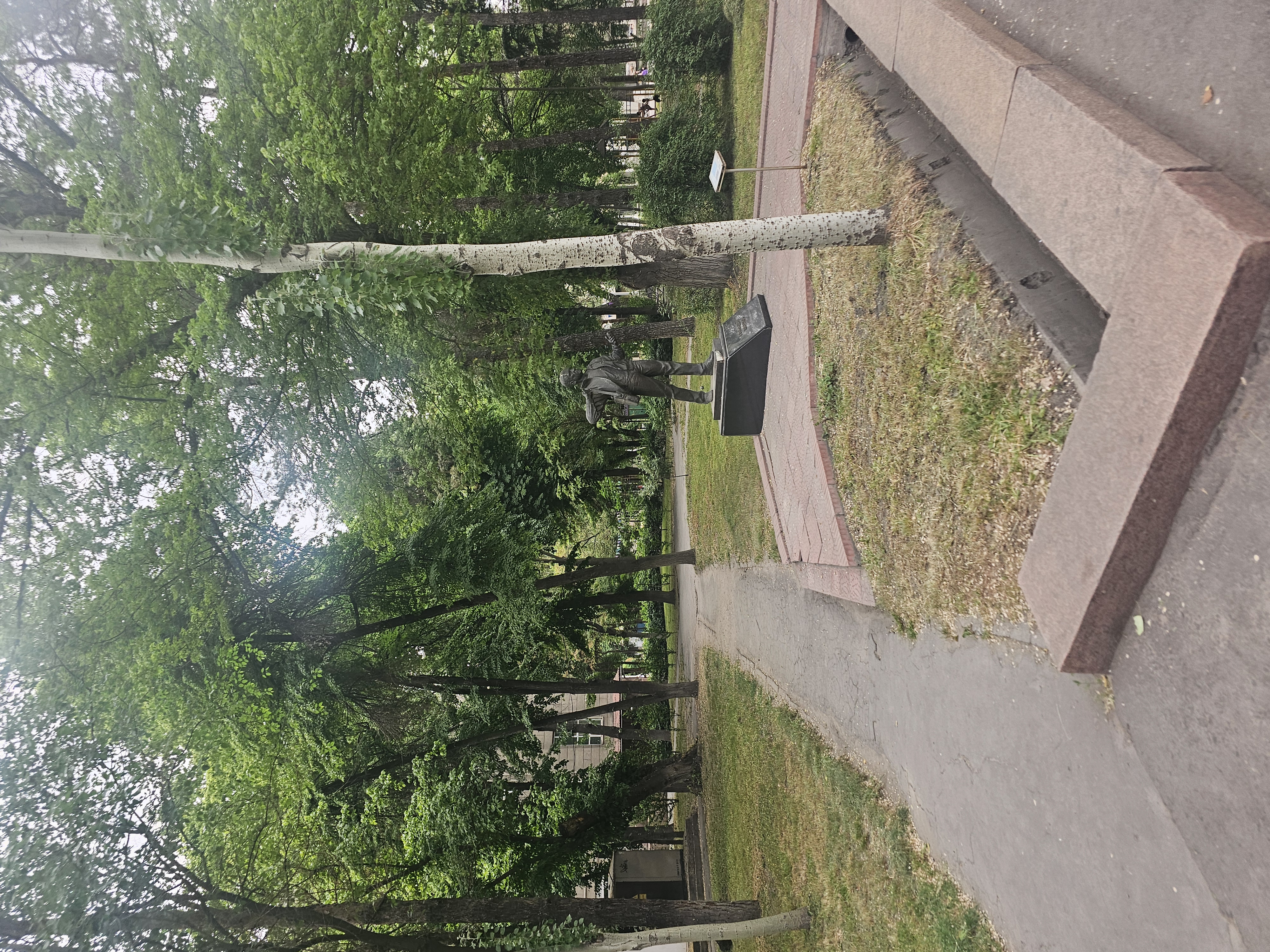 유명하고 전문적인 저널리스트 겐나디 파블류크(Геннадий Павлюк, 1958-2009)를 기리는 동상입니다. 동상 아래에는
