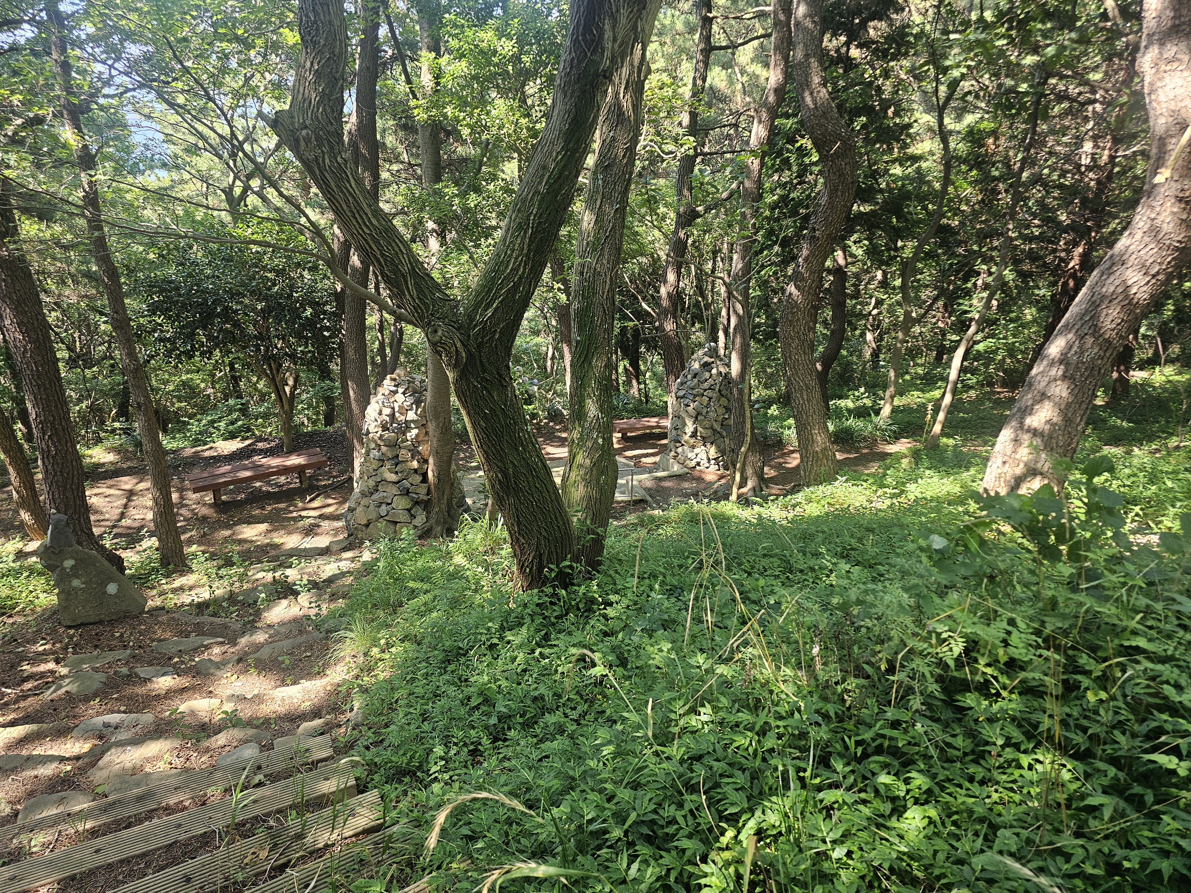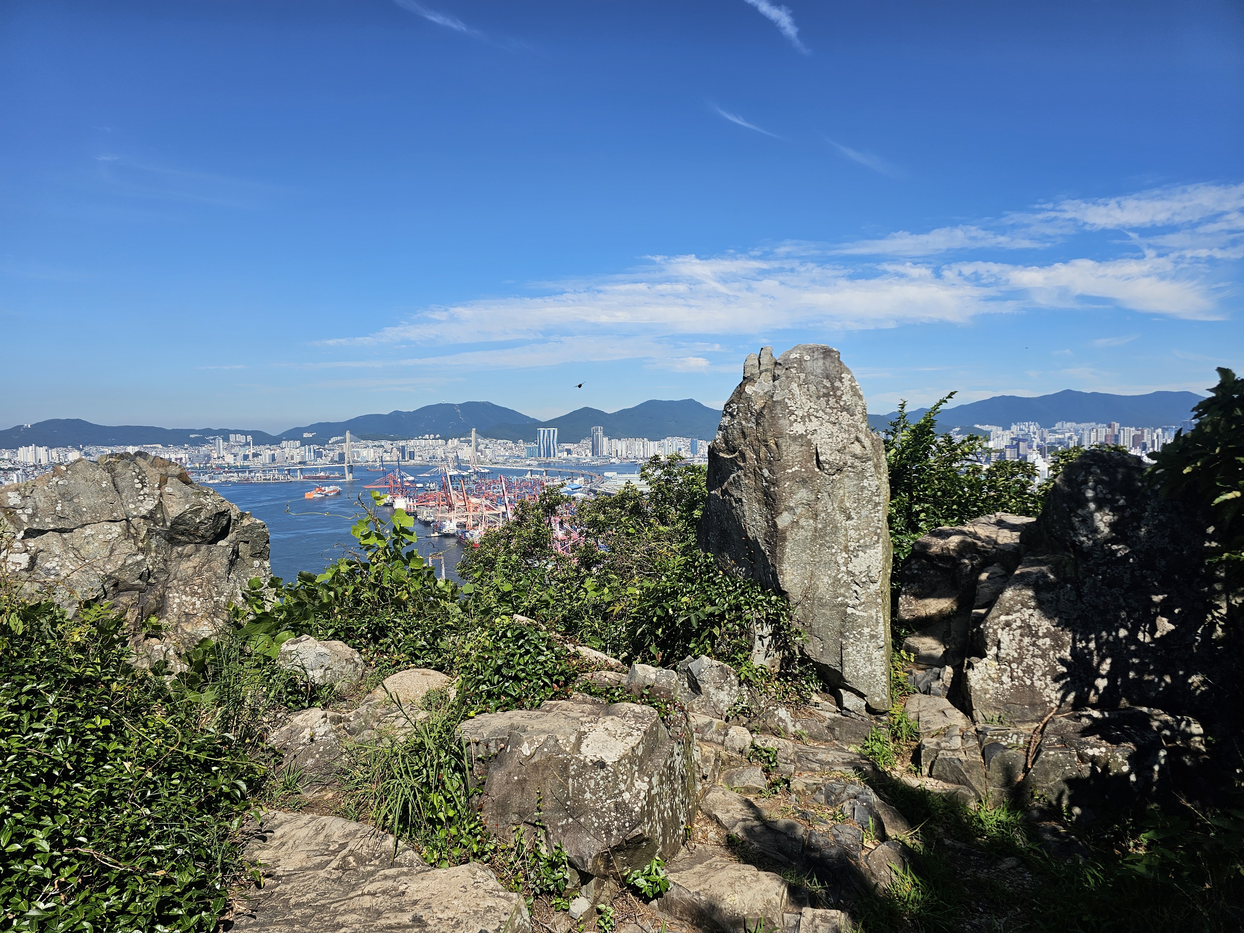신선대 주변을 지나는 신선대산복로는 갈매길입니다. 이 길은 UN기념공원과 오륙도해맞이길로도 이어지죠. 오륙도 방향으로 가는 길에 신선대의 전체 모습을 담을 기회가 있어서 한 컷 담아봤습니다. 정말 신선이 노닐던 곳같네요.