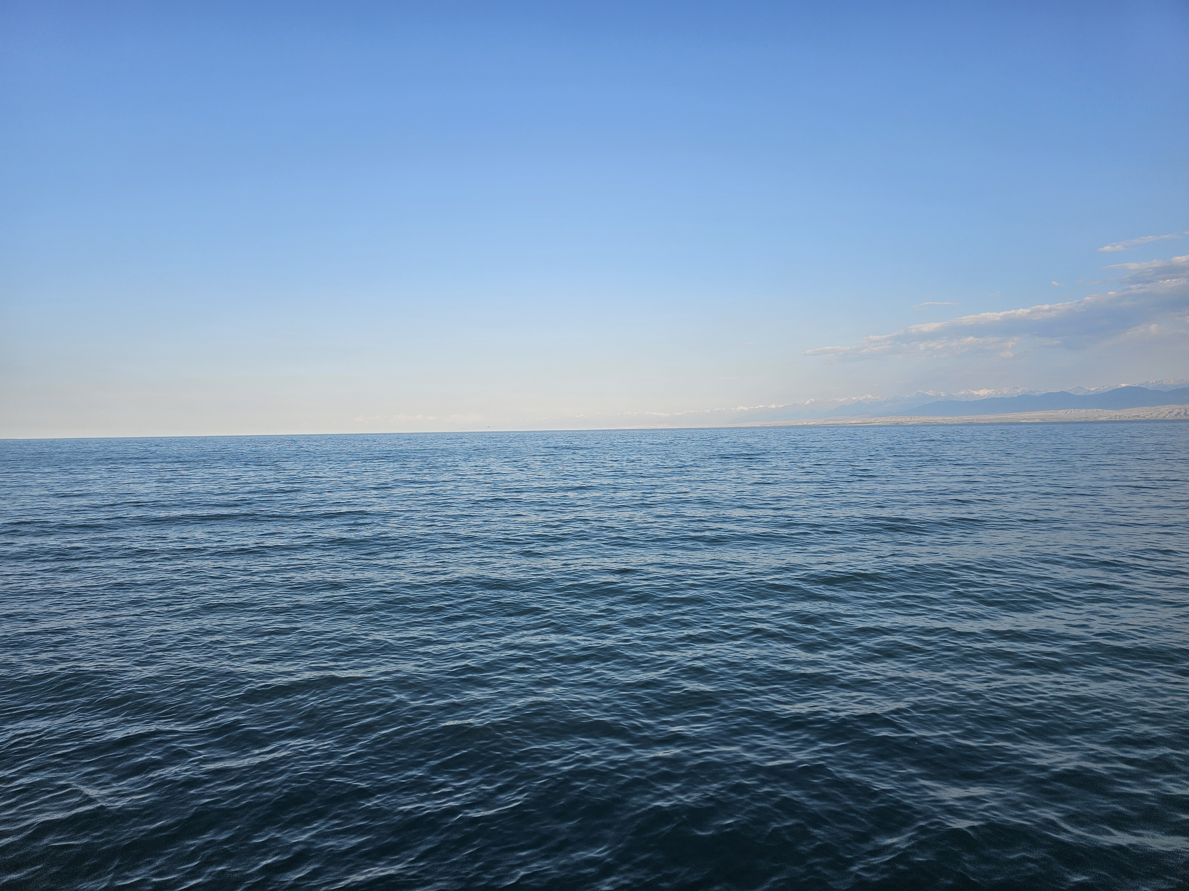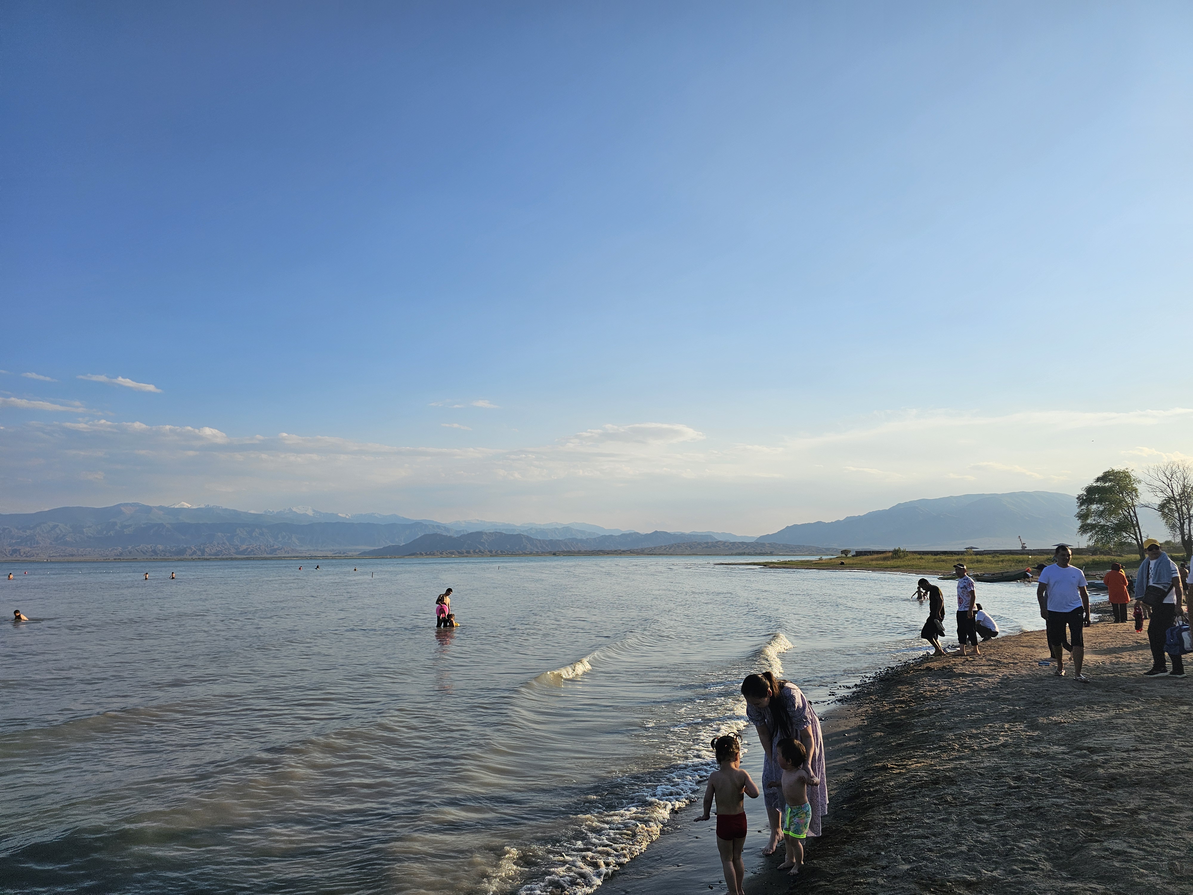 바다같이 넓은 호수 이식쿨(Иссык-Куль)입니다. 겨울에도 얼지 않기에 키르기스어로 뜨거운(Иссык) 호수(Куль)라고 불리죠. 키르기스스탄의 대표적인 약한 염도의 내륙호로, 세계에서 24번째로 크고, 아시아에서 다섯 번째로 큰 호수이자 세계에서 일곱 번째로 깊은 호수(최대깊이 668m)입니다! 서울 10개 혹은 부산 8개나 제주도 3개가 들어갈 정도의 대호수이죠~!