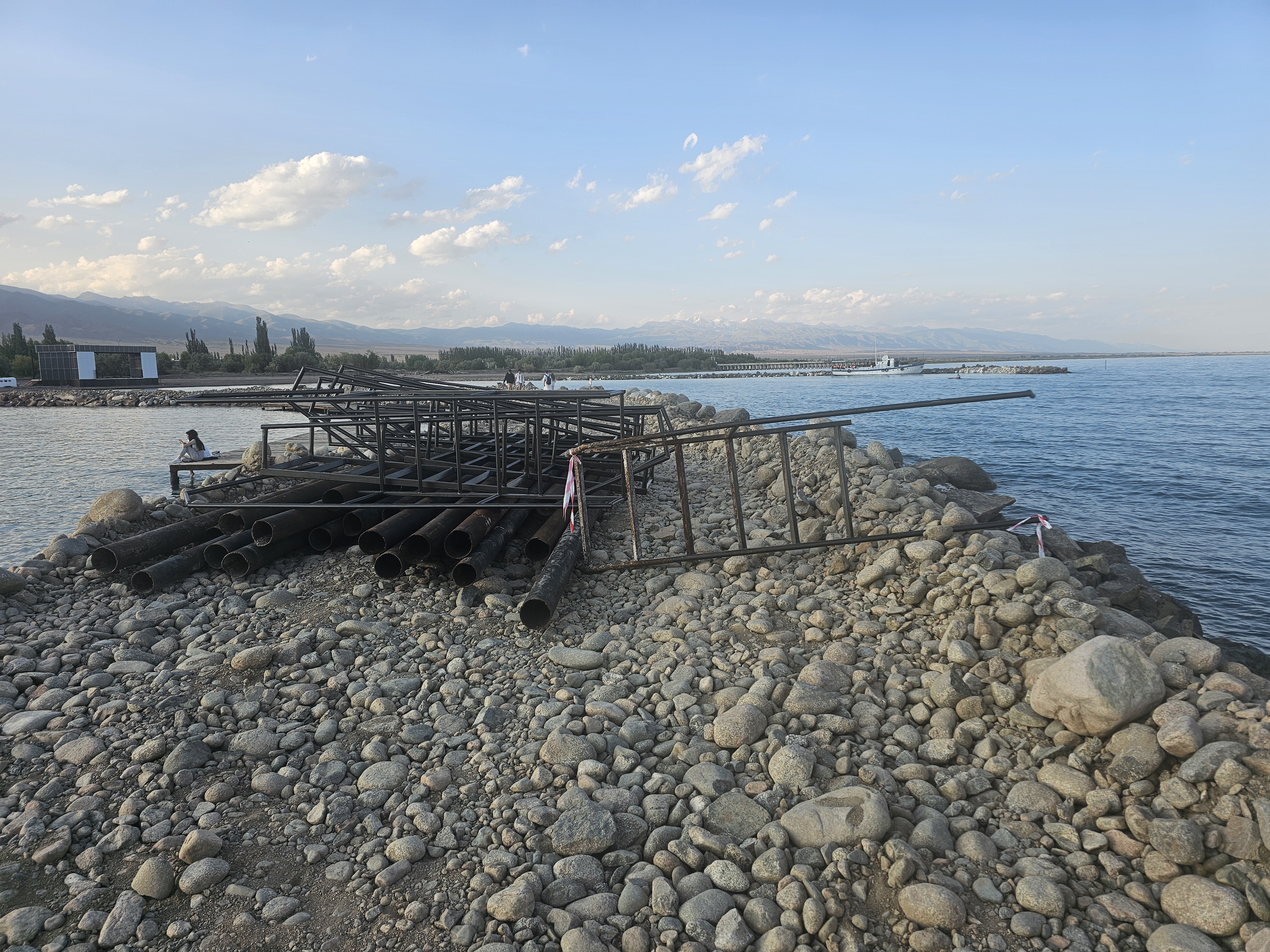 장애물을 넘고 다시 보는 이식쿨 호수 부두 안쪽입니다.