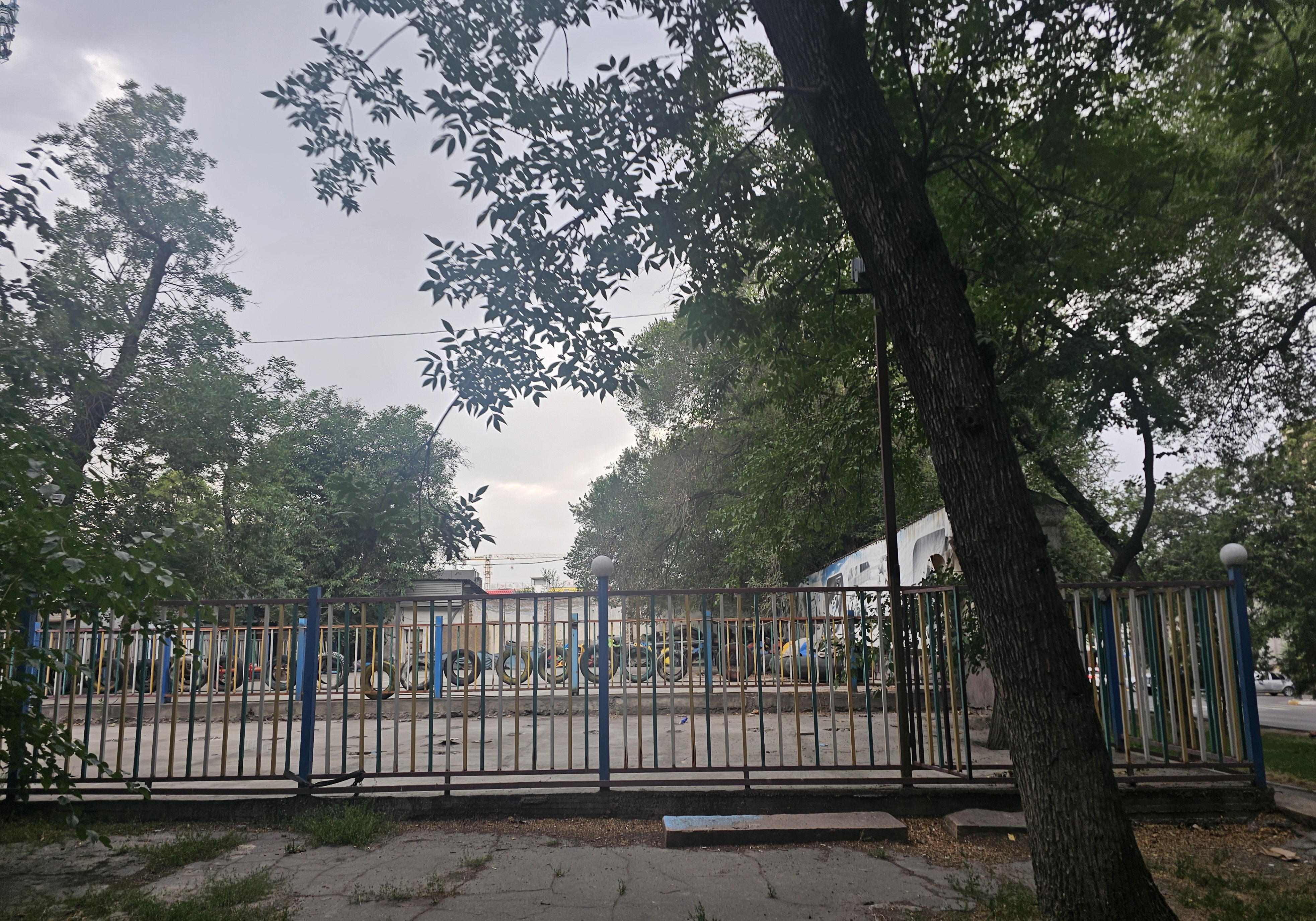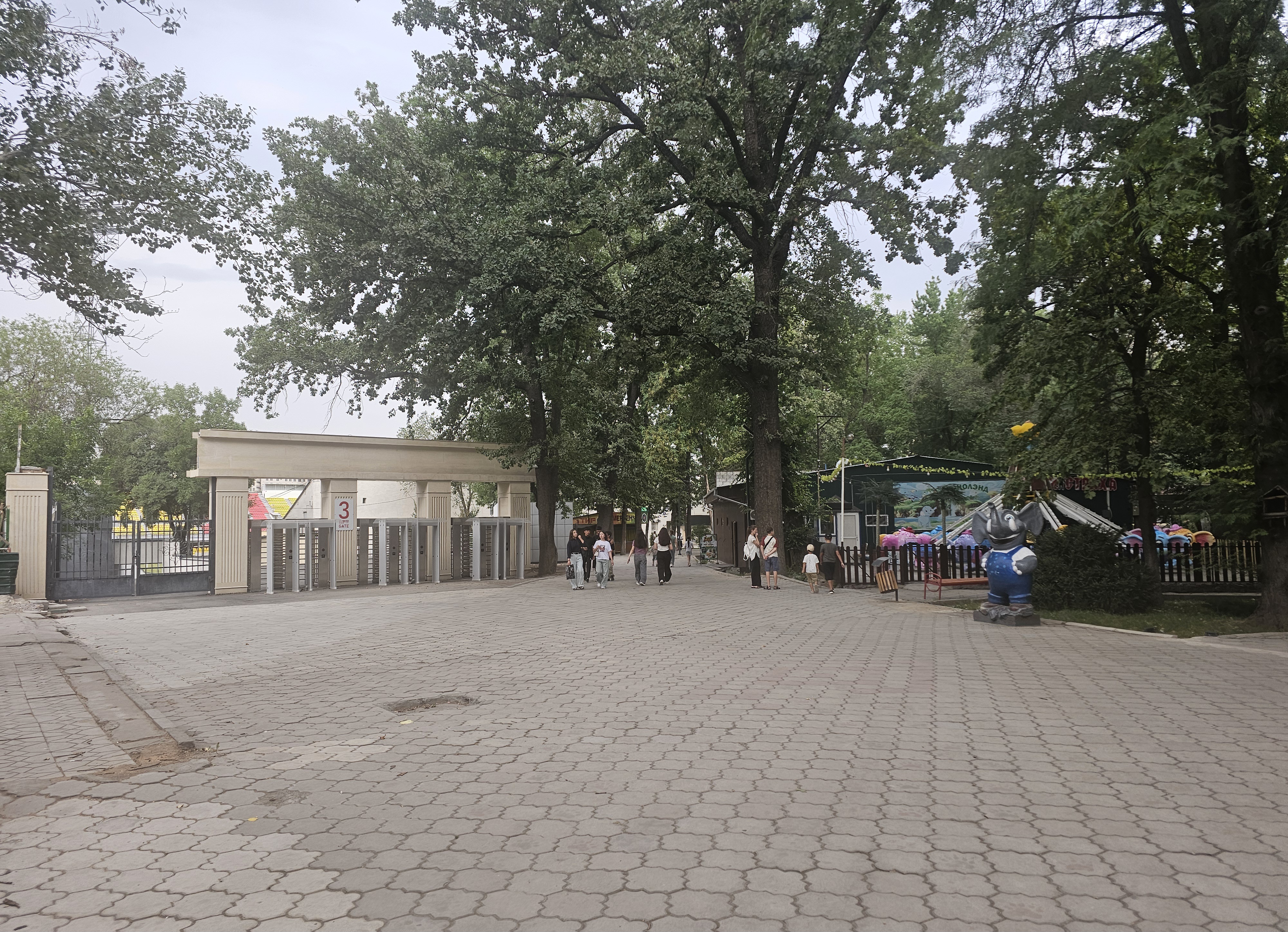 남서쪽문으로 들어가서 왼쪽으로 꺾으면 왼편에 Д. 오무르자코프 경기장(Стадион им. Д. Омурзакова) 3번 출입구가 보입니다. 실제로 저 경기장 부지는 한 때 이 공원 부지였다고 합니다.