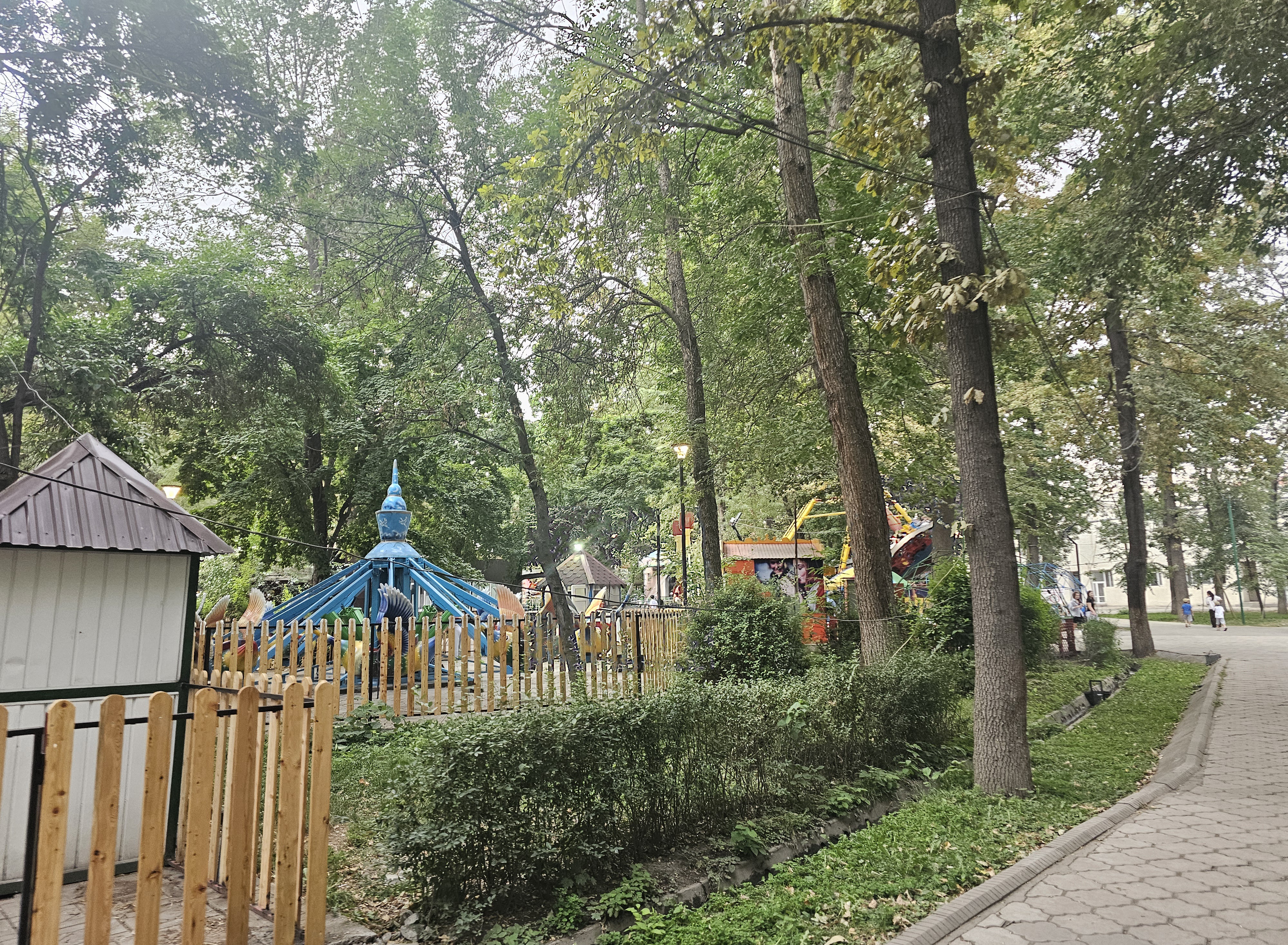 키르기스스탄 비슈케크 페르보마이구의 유명한 놀이공원 И.В. 판필로프 공원(Парк им. И.В. Панфилова)입니다! 약 40개의 어트랙션이 있는 키르기스스탄 비슈케크 최대의 놀이공원 중 하나죠. 1879년에서 1880년에 알렉세이 페티소프(Алексей Фетисов)에 의해 카존니 정원(관용 정원, Казённый сад)과 그 옆에 원예학교를 세워 여러 과일나무와 관상용 식물들을 심은 것에서 이 땅의 역사가 기록됩니다.