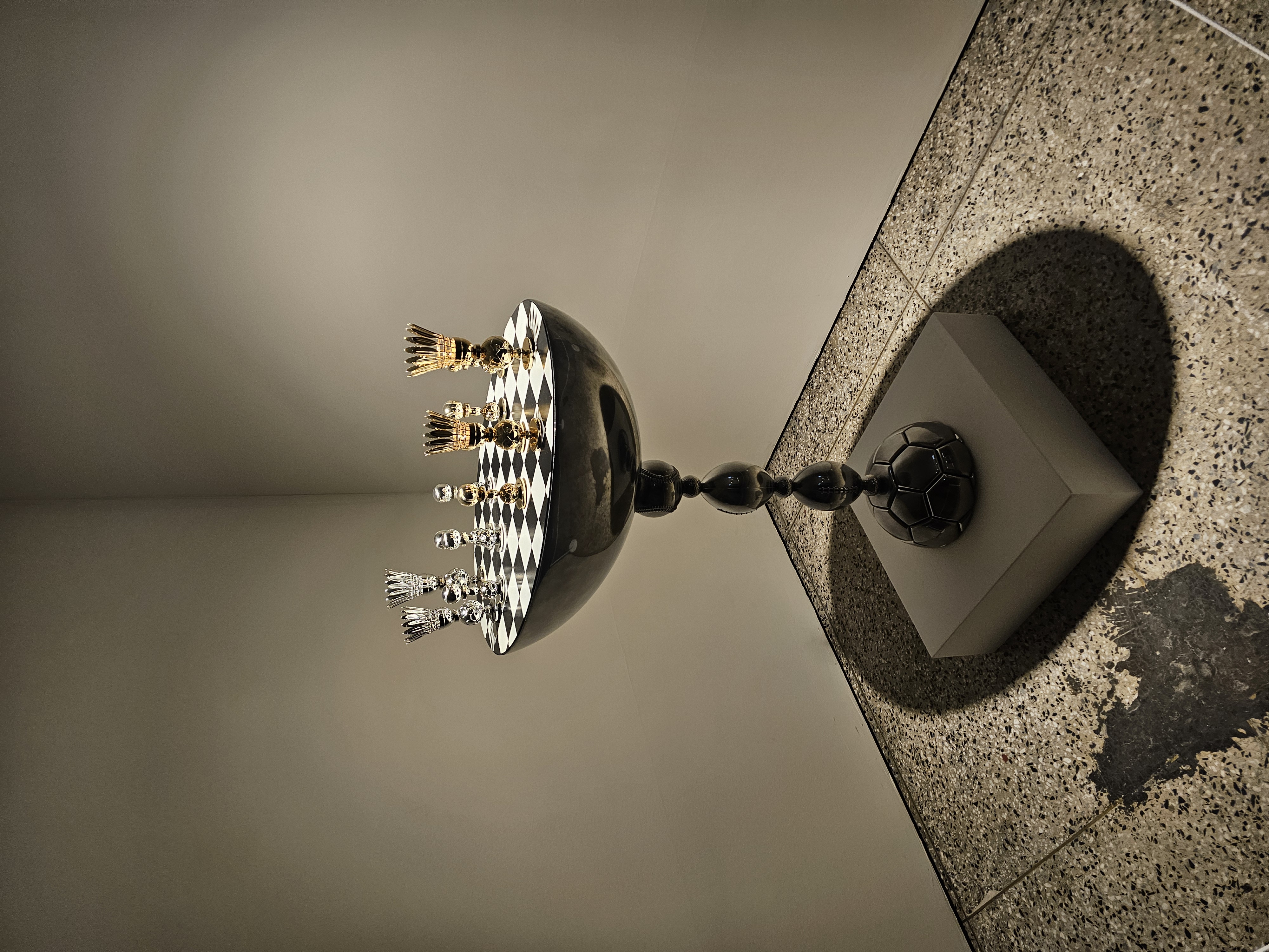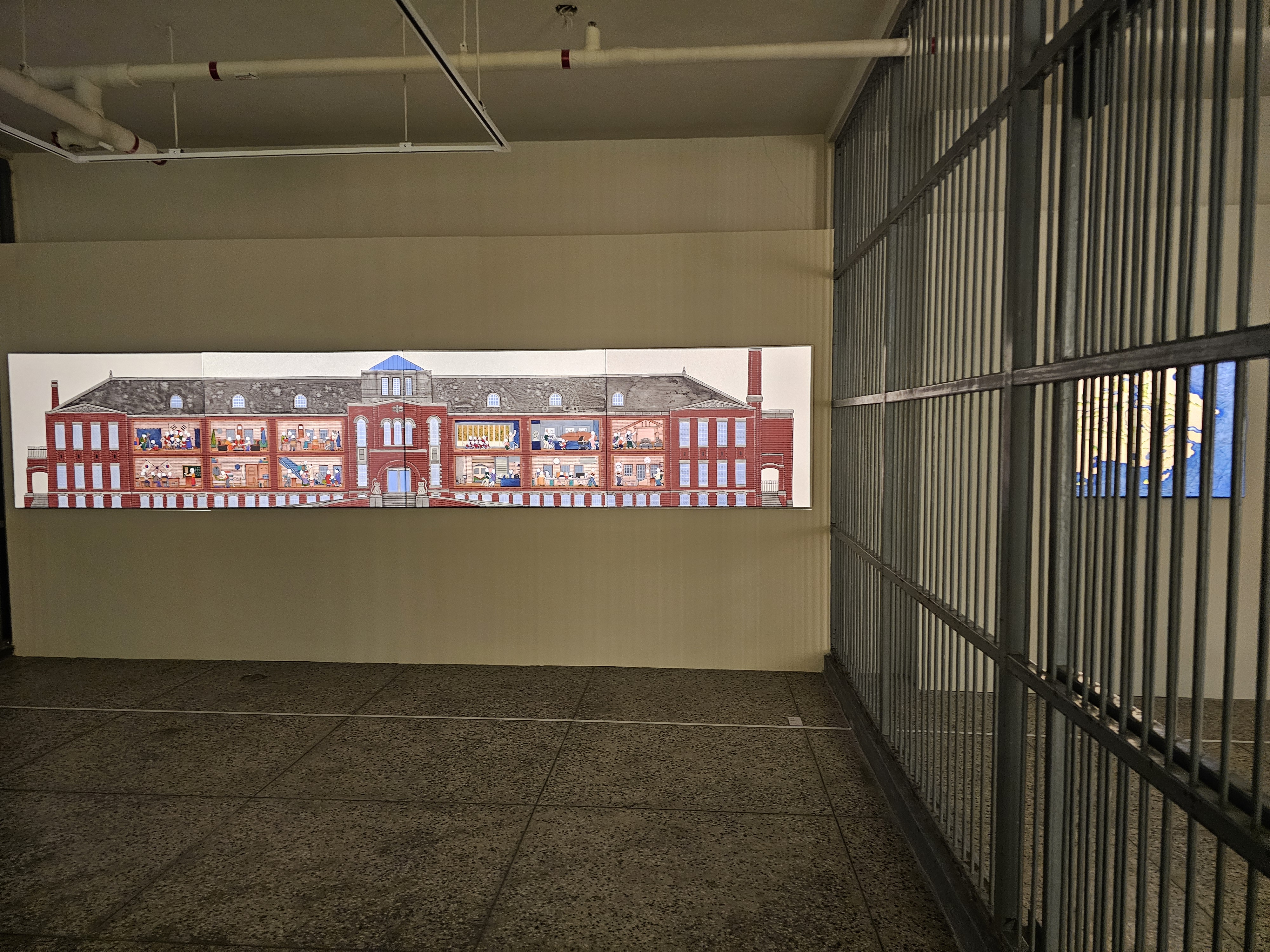 미국대사관 겸 미국공보원((현) 부산근현대역사관 별관)을 묘사한 작품입니다. 식민통치와 전후 외교적 갈등을 묘사한 체커보드 위에 일본과 미국에 의해 쓰였던 이 땅을 다시 되찾고자 하는 노력을 표현한 농구공으로 꽉 채워진 농구골대가 세워져 있네요.
