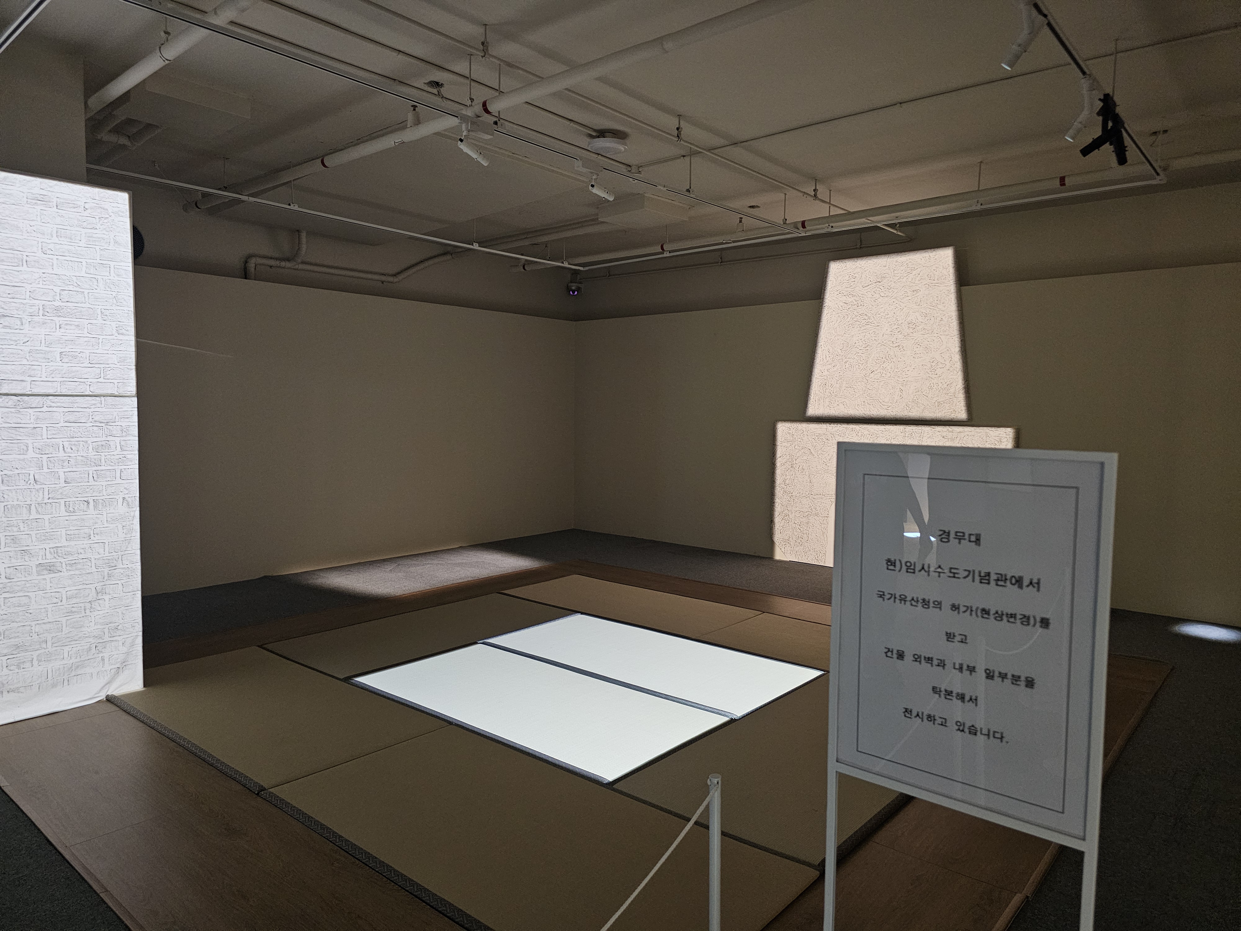 경무대((현)임시수도기념관)에서 국가유산청의 허가(현상변경)을 받고 건물 외벽과 내부 일부분을 탁본에서 전시하는 경무대존입니다.