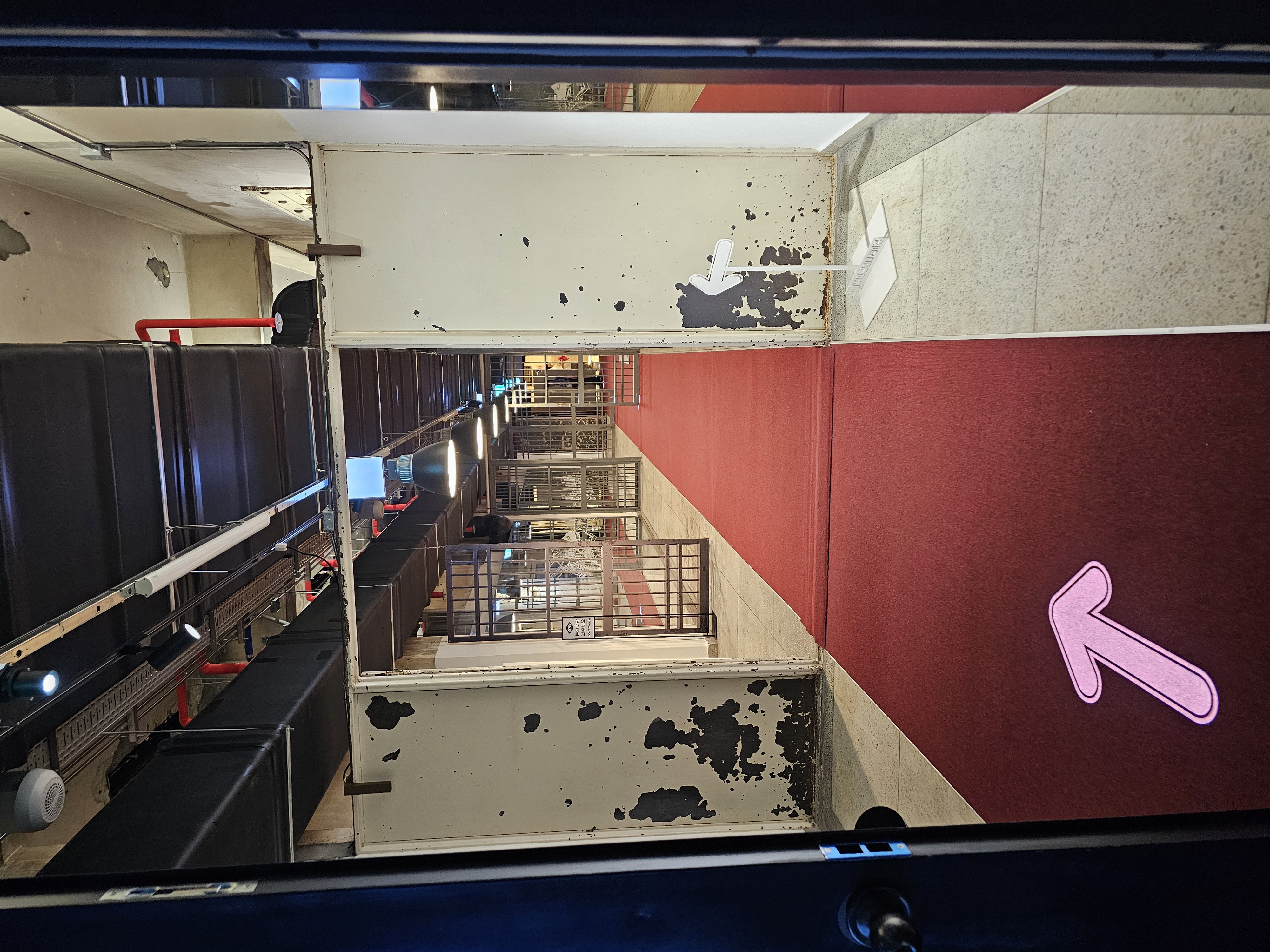 부산항의 소리를 중심으로 빛, 오브제, 텍스트, 영상 등을 활용해 부산항 제1부두의 모습을 좁은 감시복도에 묘사했습니다. 마치 항해하는 배 안의 통로를 지나가는 듯한 느낌이 들었습니다.