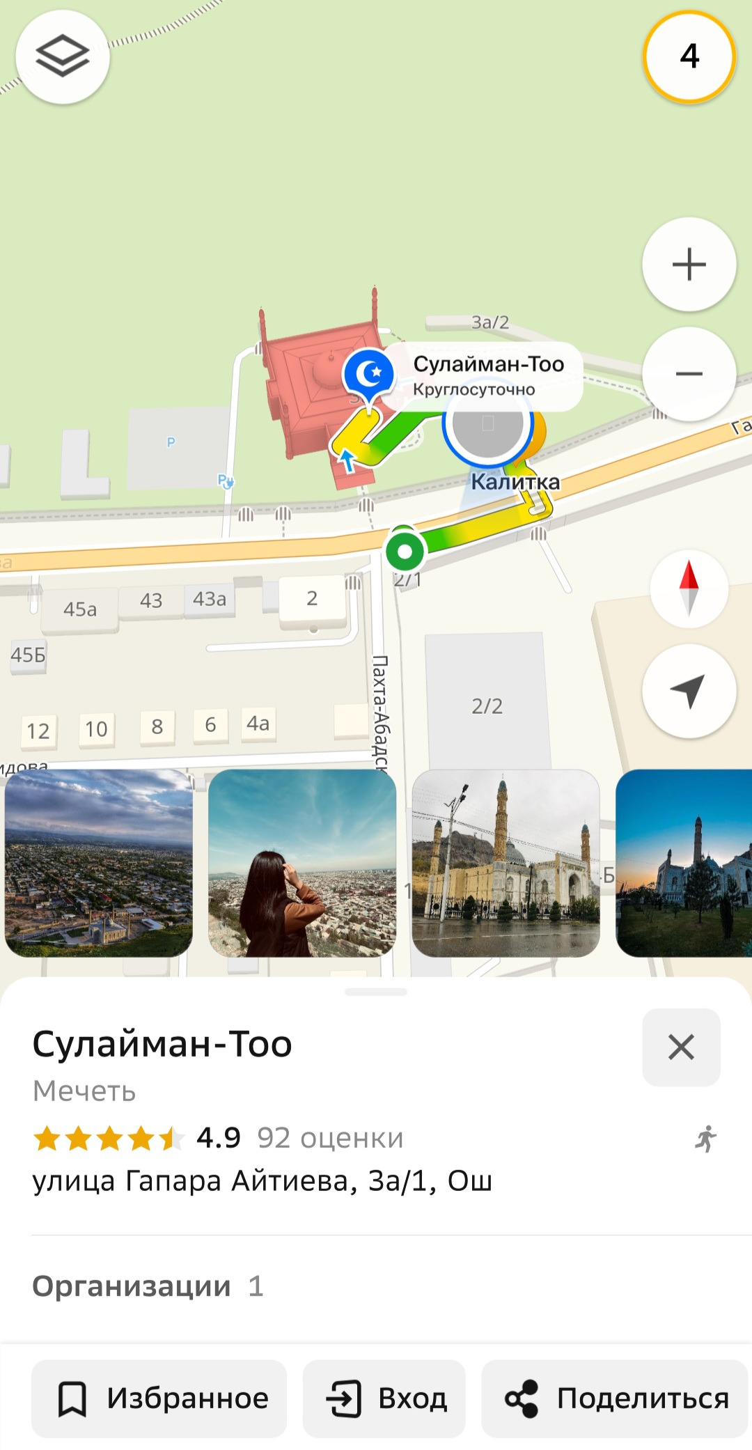 입구로 들어서서 바로 보이는 건물에 초록색으로 알라(الله)라고 글씨가 쓰여 있습니다. 이 건물에는 서점(Книжный магазин)과 화장실 등이 있습니다.