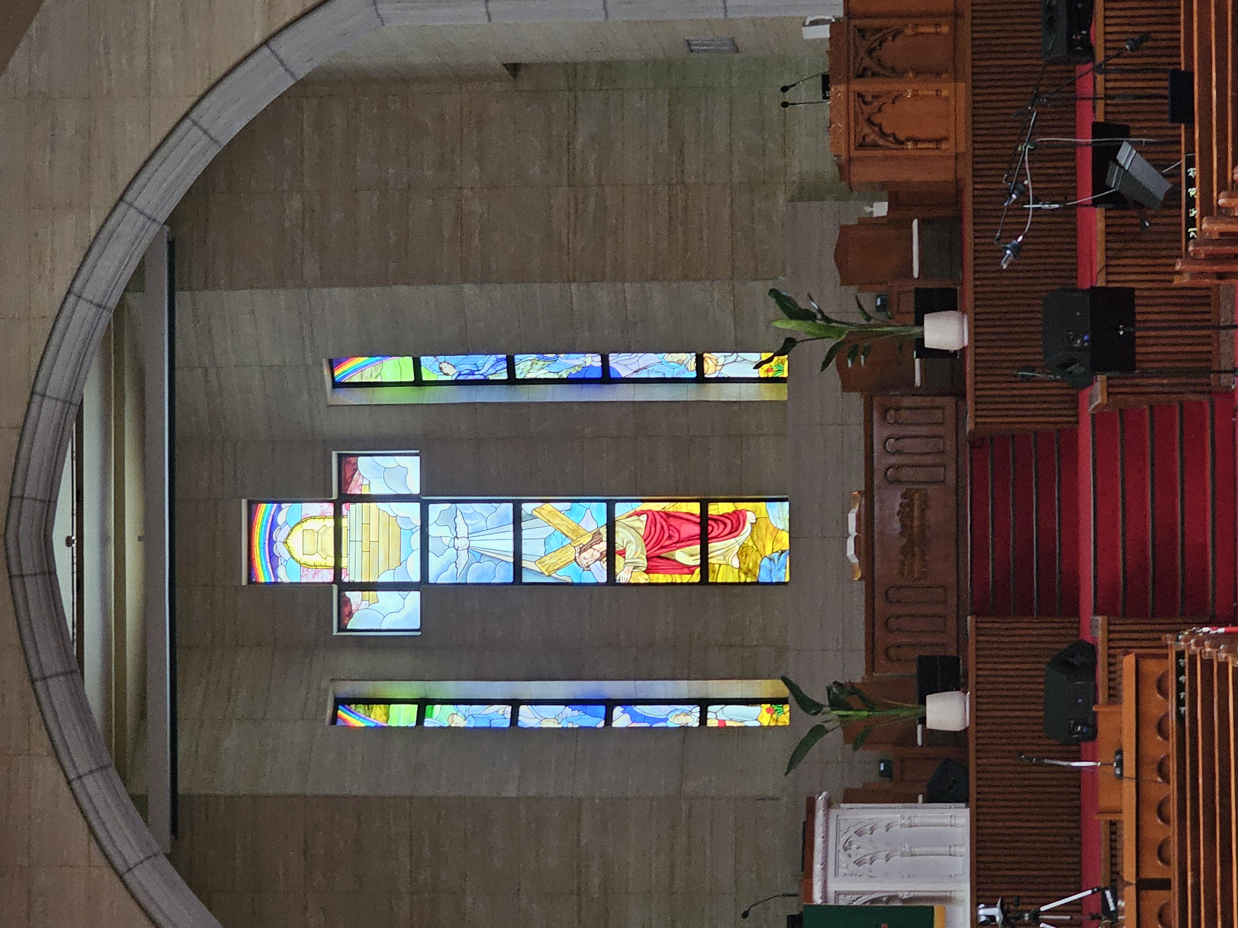 입구로 들어가면 조금 낮은 천장이 이어지다가 위로 천장이 뻥 뚫리면서 엄청 넓고 긴 본당이 나타나는 구조입니다. 시각적으로 엄청 신성한 느낌을 받았습니다. 사진으로 다 담을 수 없지만, 그 전체를 본 순간 감탄이 절로 나왔습니다. 대구 최초의 크리스트교의 역사를 지어낸 이 교회는 이렇게 대구의 중심의 청라언덕에서 그 하늘로의 영광을 드러냅니다.