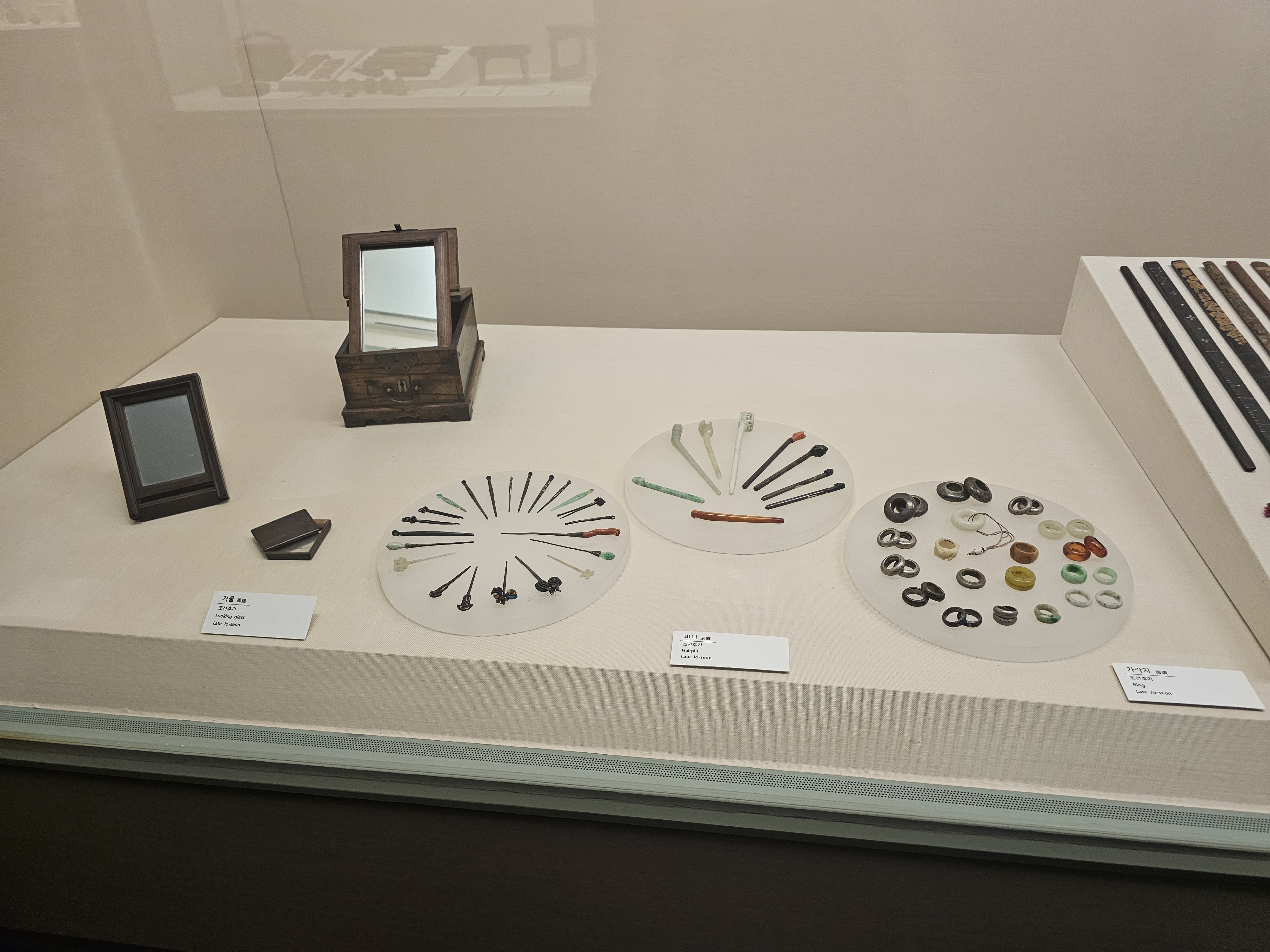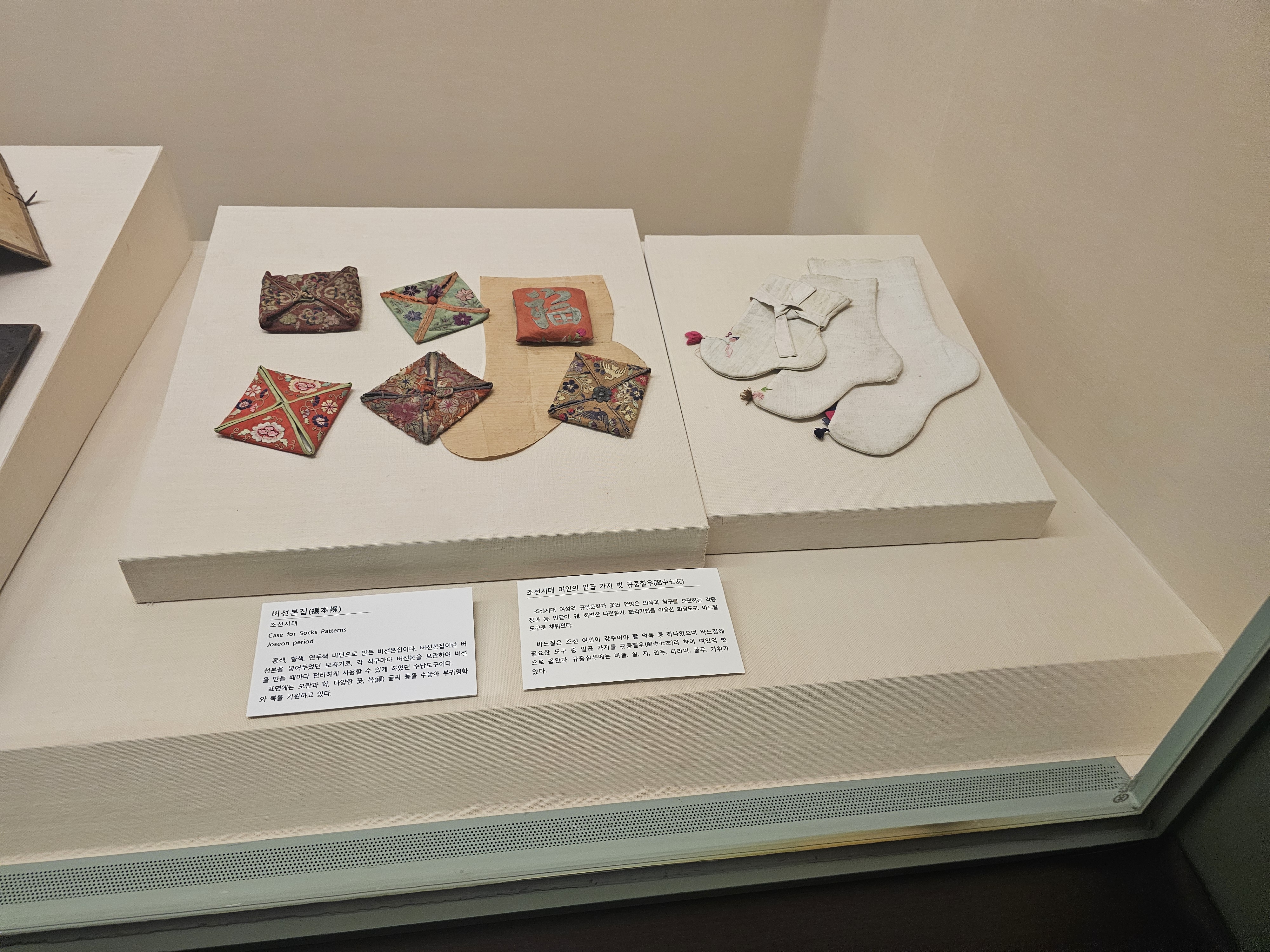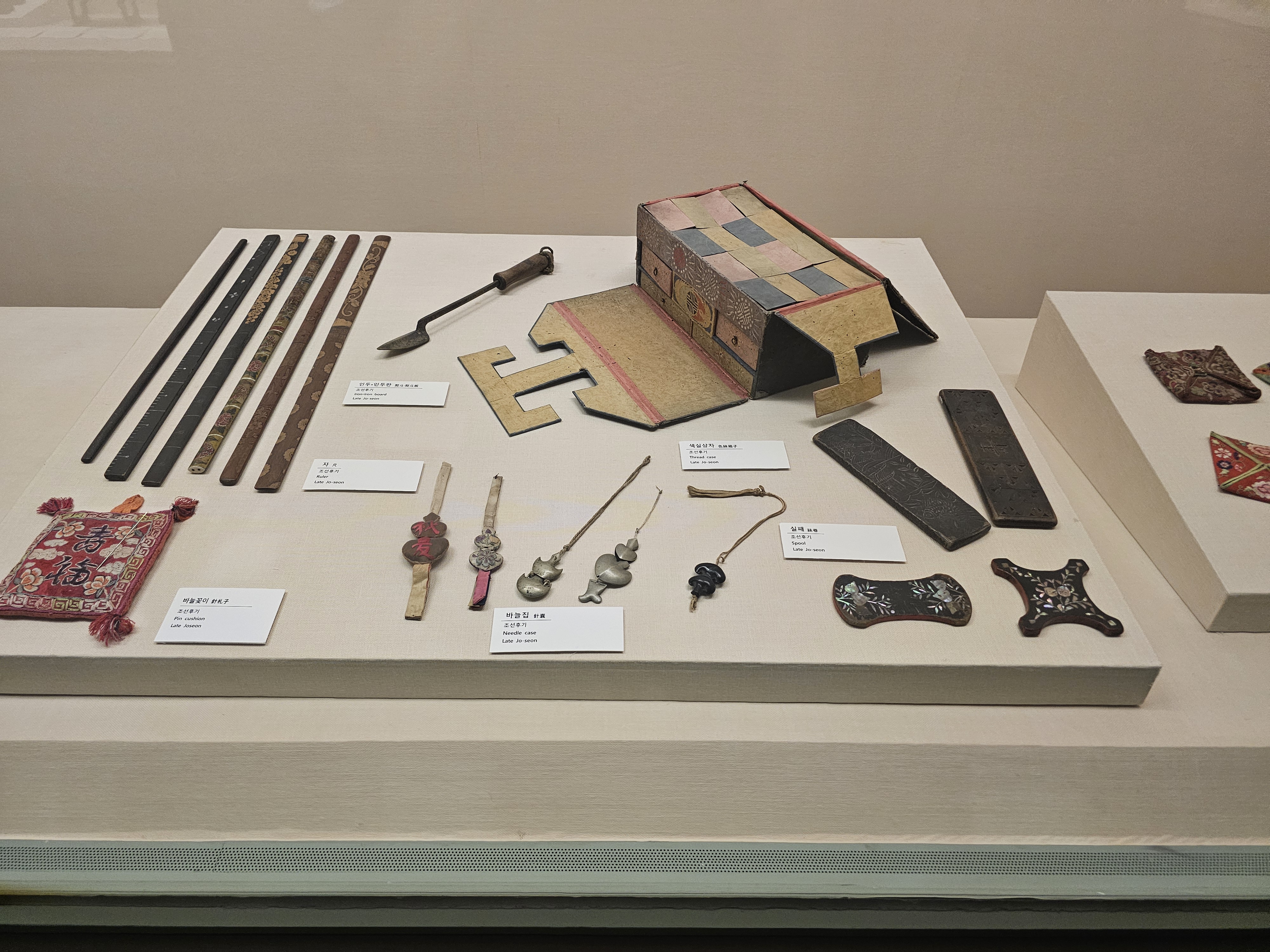 여성의 규방문화가 꽃핀 안방에서 쓰던 조선후기의 거울, 비녀, 가락지, 바늘꽂이, 자, 인두와 인두판, 색실상자, 실패(실을 감아두는 도구), 바늘집, 버선과 버선본집 등도 볼 수 있습니다. 그 외에도 조선시대 장신구를 전시한 공간에서 다양한 장신구도 살펴볼 수 있죠.