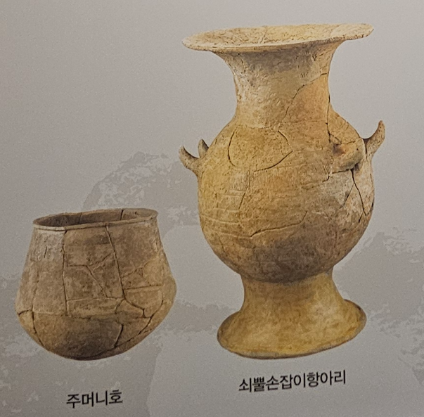 빙하기가 끝나고 기후가 따뜻해지는 약 10000년 전부터 한반도의 신석기가 시작됩니다. 이때부터 점차 '농경'이라는 식량 생산뿐 아니라 직물 생산, 토기 생산, 정착 생활이 자리 잡았죠. 그러자 묘지 설치(가덕도 장항유적의 토광묘, 진주 상촌리유적의 옹관묘, 울진 후포리유적의 세골장, 춘천 교동의 동굴화장 등), 대외교류(흑요석, 결합식 낚시도구, 결상이식 옥제귀걸이, 조몬 토기 등)도 나타납니다.