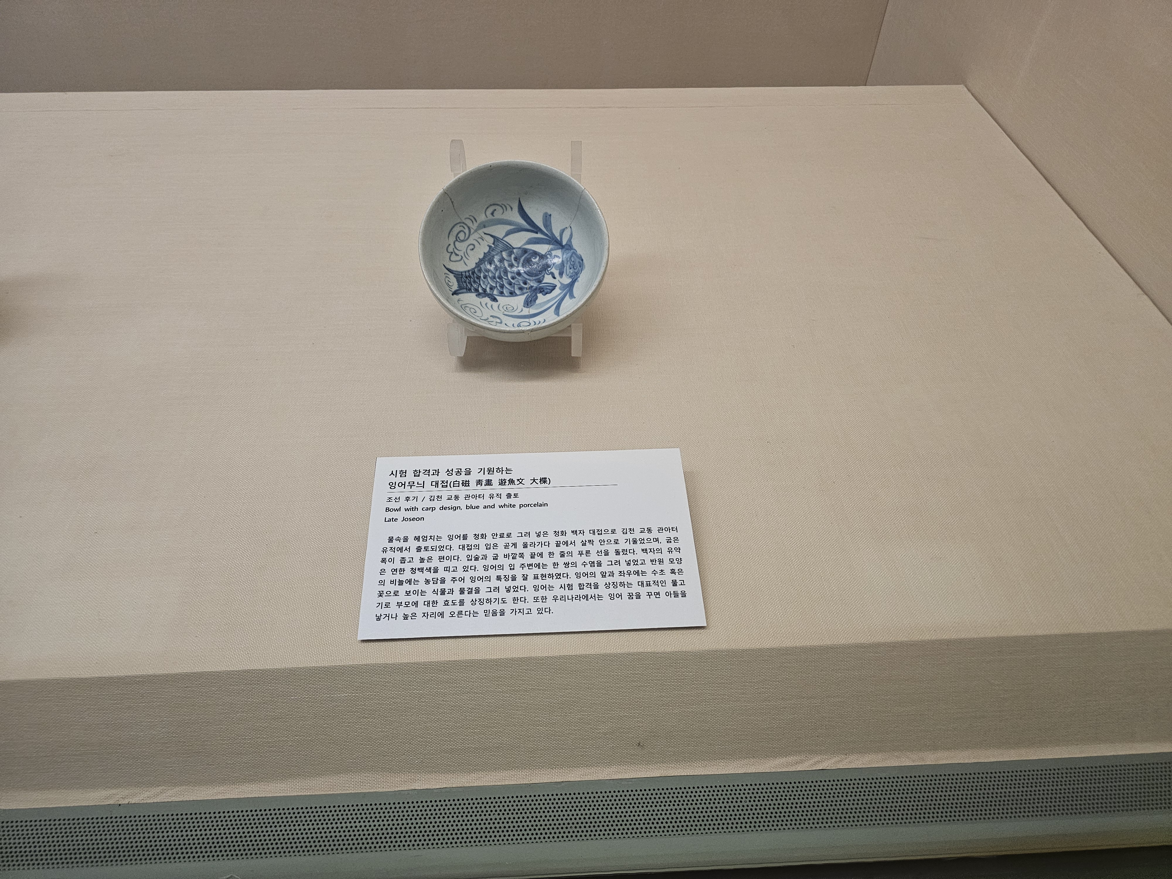 이 조선 백자의 결정은 청화백자(靑華白磁)로 나타나는데요. 그릇 표면에 푸른색 코발트 안료로 다양한 무늬와 그림을 그린 백자입니다.