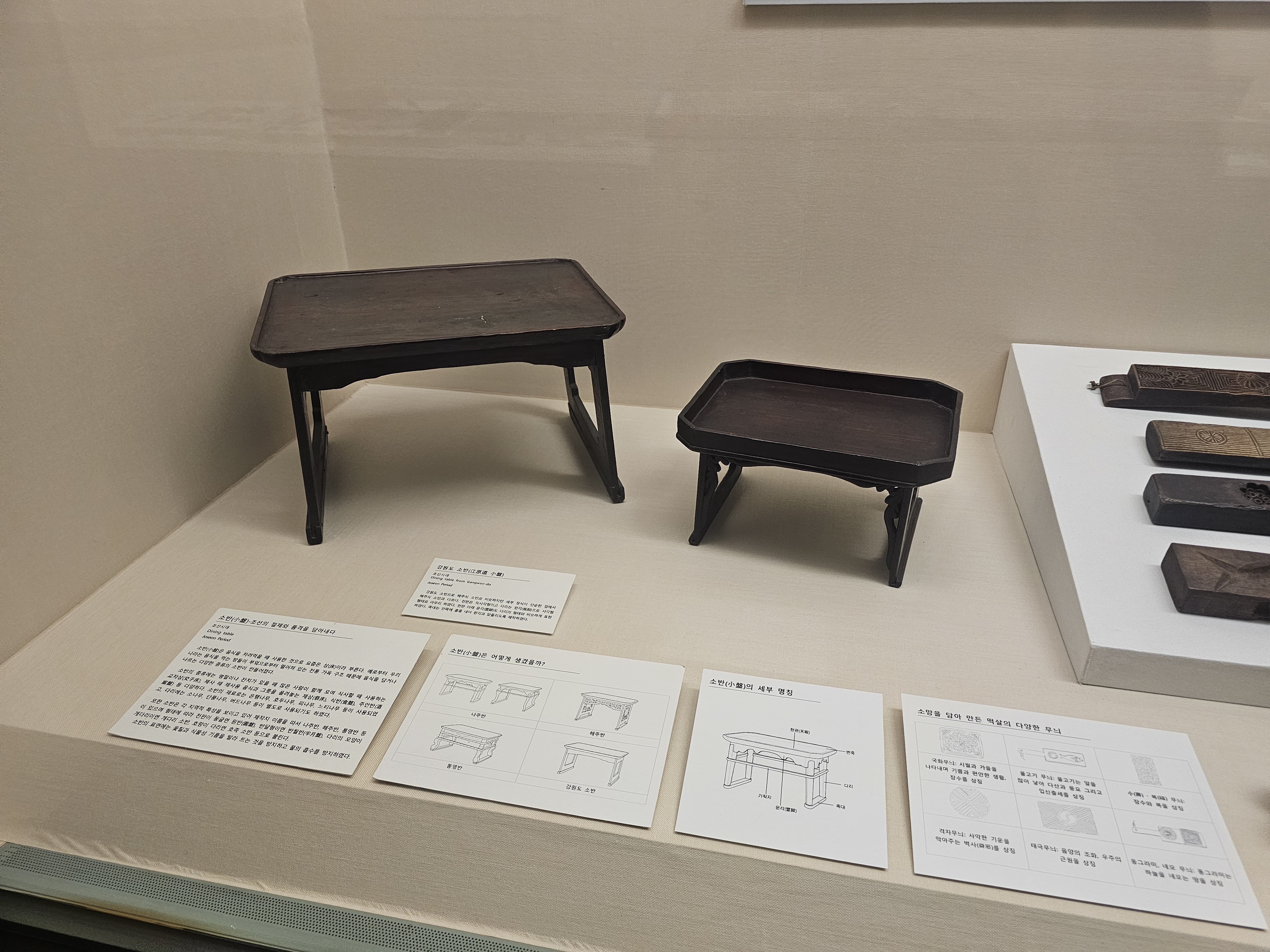 소반(小盤), 떡살(떡에 무늬를 찍는 판), 다식판(茶食板, 다식을 박아내는 판), 수저집, 주칠을 한 찬합(饌盒, 도시락통)과 대나무로 만든 찬합 등 보통 기와집에서 안방과 이어진 부엌이나 찬방(饌盒, 반찬을 만들 준비를 하는 방) 등에서 쓰는 생활용기도 전시되어 있죠.