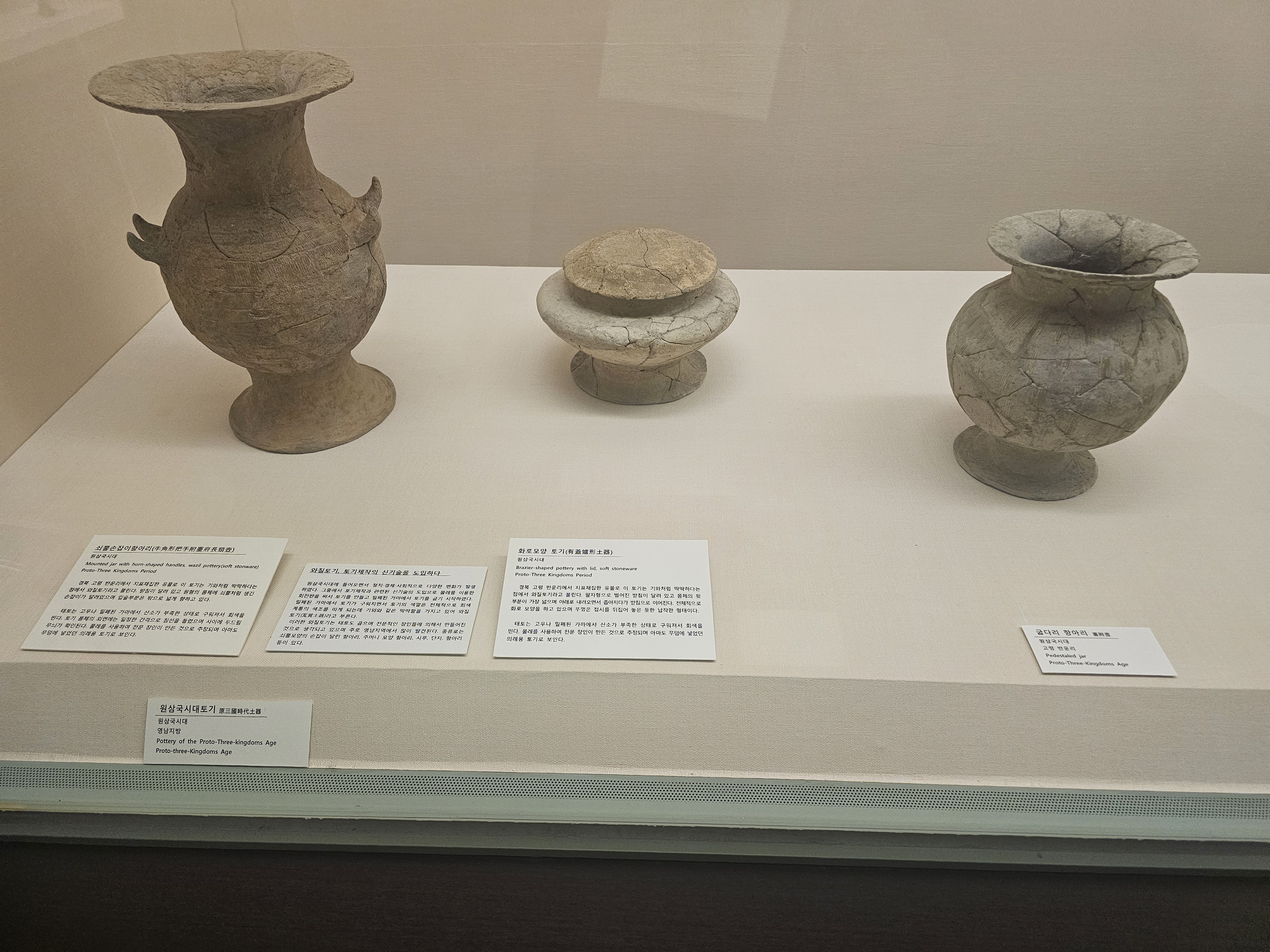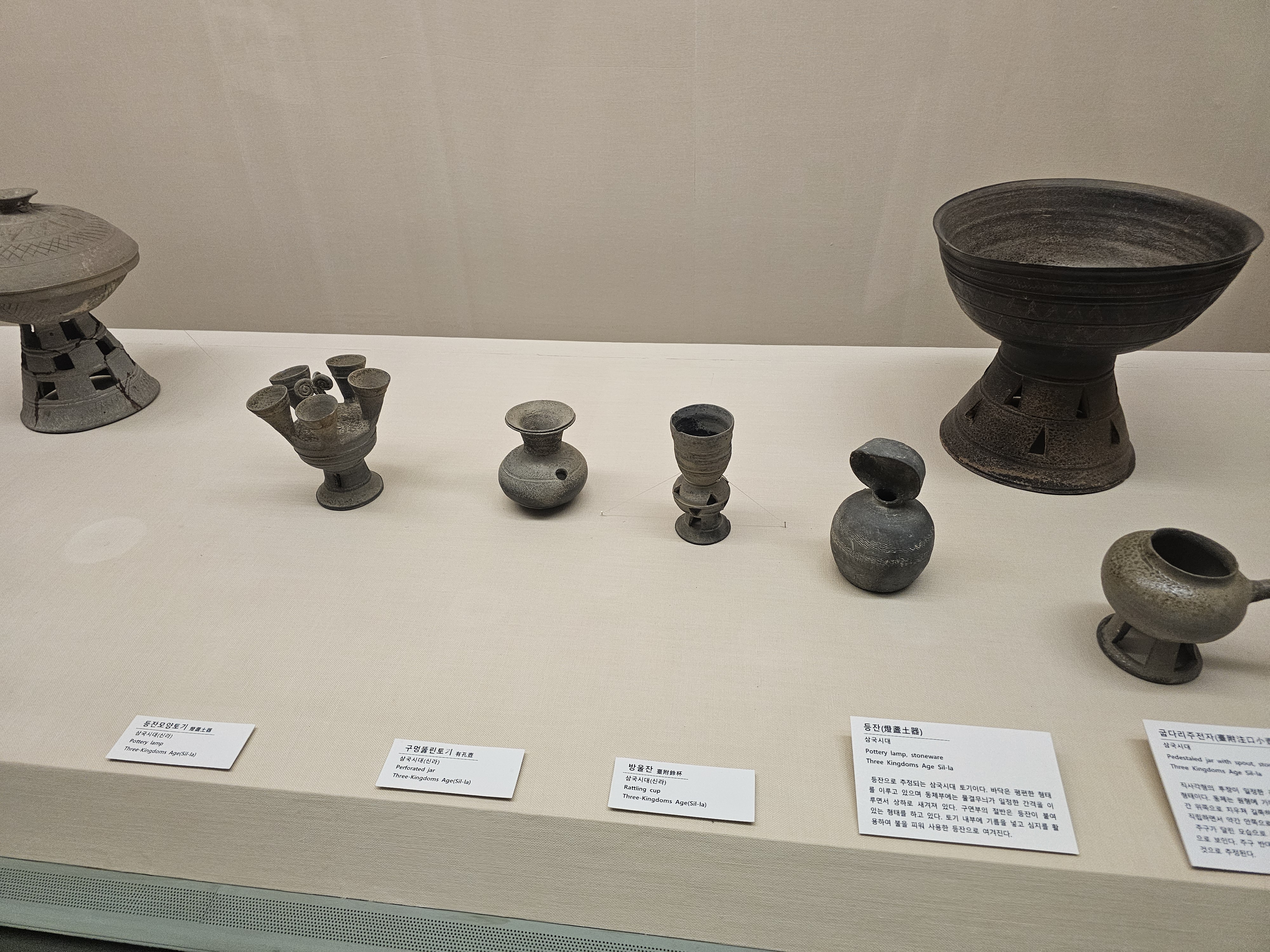 큰 범위에서 고조선이 멸망한 기원전 108년부터 기원후 300년쯤까지 청동기의 소멸과 철기의 발달 및 보급이 이루어지는 원삼국시대가 펼쳐집니다. 한반도 북부에는 고구려, 옥저, 동예, 부여 등이, 한반도 중남부에서는 진한, 변한, 마한이 세력을 형성했죠. 이 식기에는 특히 토기에서 돌림판 사용과 굴가마의 등장으로 단단한 회색경질토기와 연한 회백색와질토기가 대략으로 제작됩니다. 대구지역에서는 팔달동 유적, 봉무동 유적, 평리동 유적, 비산동 유적, 만촌동 유적이, 경북지역에서는 경산 신대리 유적, 영천 어은동 유적, 경주 사라리 130호무덤 유적, 경주 덕천리 유적 등이 유명합니다.