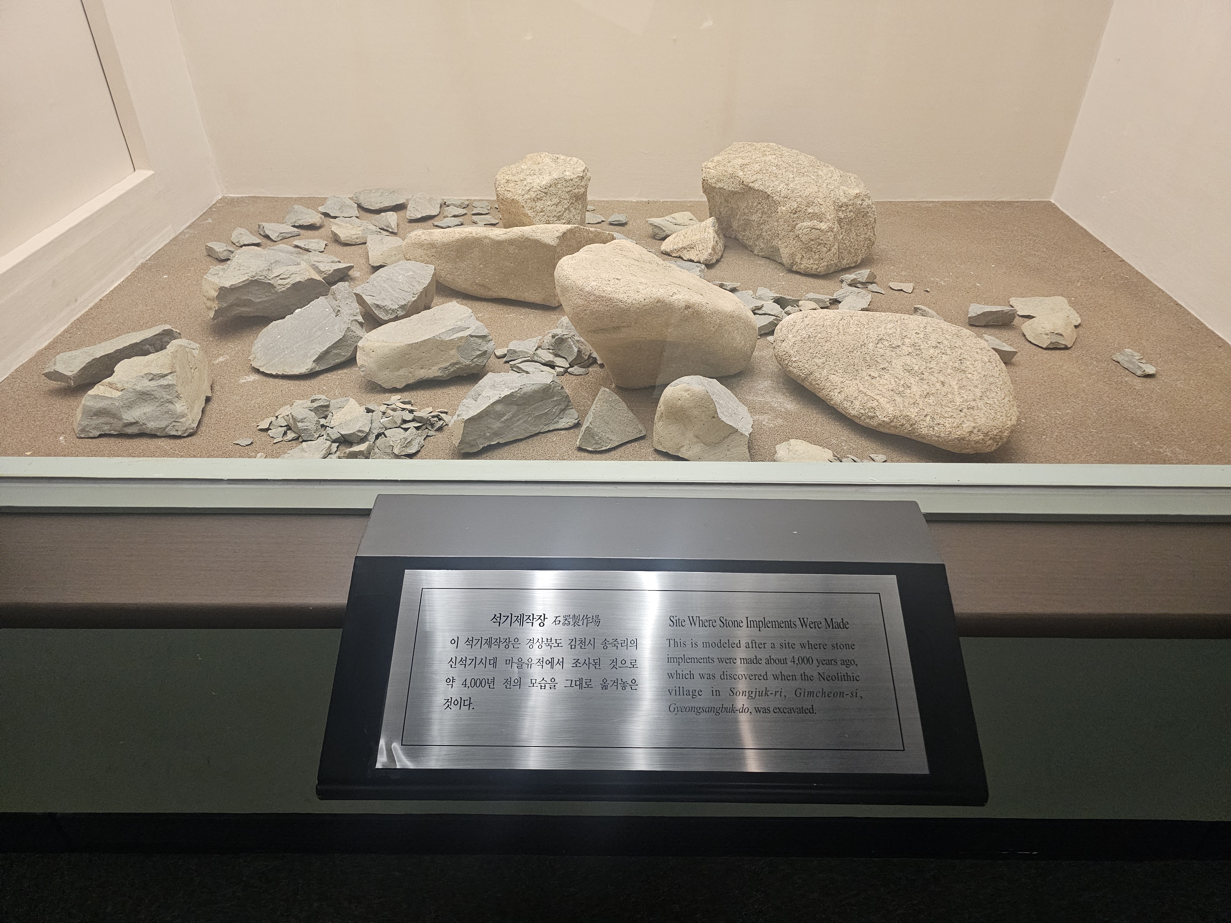 송죽리 유적에서는 석기제작장도 발굴되었습니다. 4000여 년 전의 그 모습을 재현해 뒀네요.