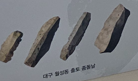 특히 대구 월성동 후기 구석시 시대 유적은 대구에서의 인간 거주 역사를 기원전 18000년~15000년까지 올려놓았는데, 이곳에서 출토된 흑요석은 그 원산지가 백두산으로 추정되어서 놀라움을 드러냅니다. 또한 동아시아에서 최초로 발견된 아슐리안식 석기인 전곡리 주먹도끼로 인해 하버드대학의 모비우스 교수가 주장했던 주먹도끼는 인도 서쪽지역에서 나오고 찍개류는 인도 동쪽지역에서만 나온다는 모비우스 이론이 와장창 깨져버리게 됩니다.