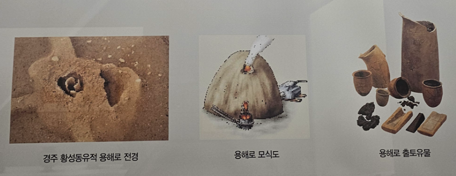 용해로, 거푸집 폐기장, 화덕, 옹관 등과 주거지가 확인된 경주 서천변 황성동 마을은 제철(製鐵, 철광석 제련)을 전문적으로 하는 마을이었다고 합니다. 이곳에선 제강 과정과 단조 과정만 확인되어 철과석의 1차 처리과정인 제련 과정은 다른 곳에서 있었던 것으로 보인다고 합니다. 이를 통해 원삼국시대에 제철과정이 분화됨을 확인할 수 있습니다.