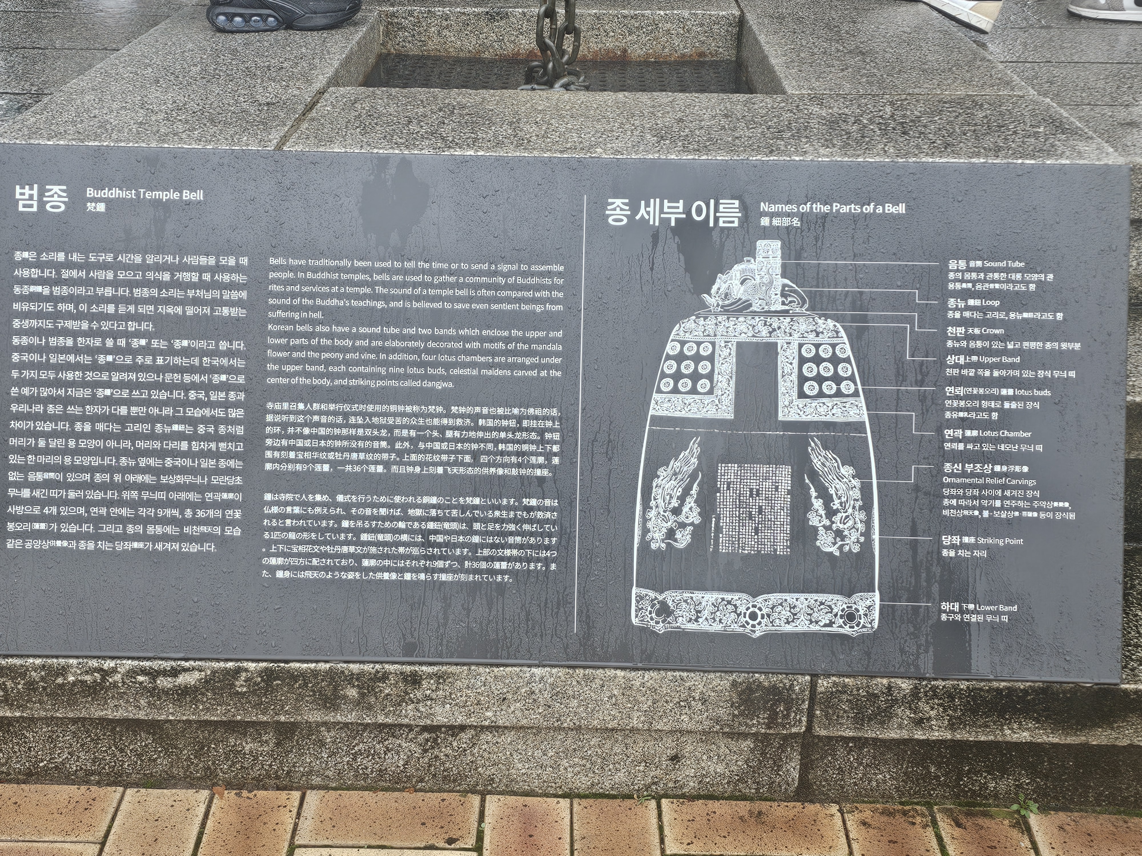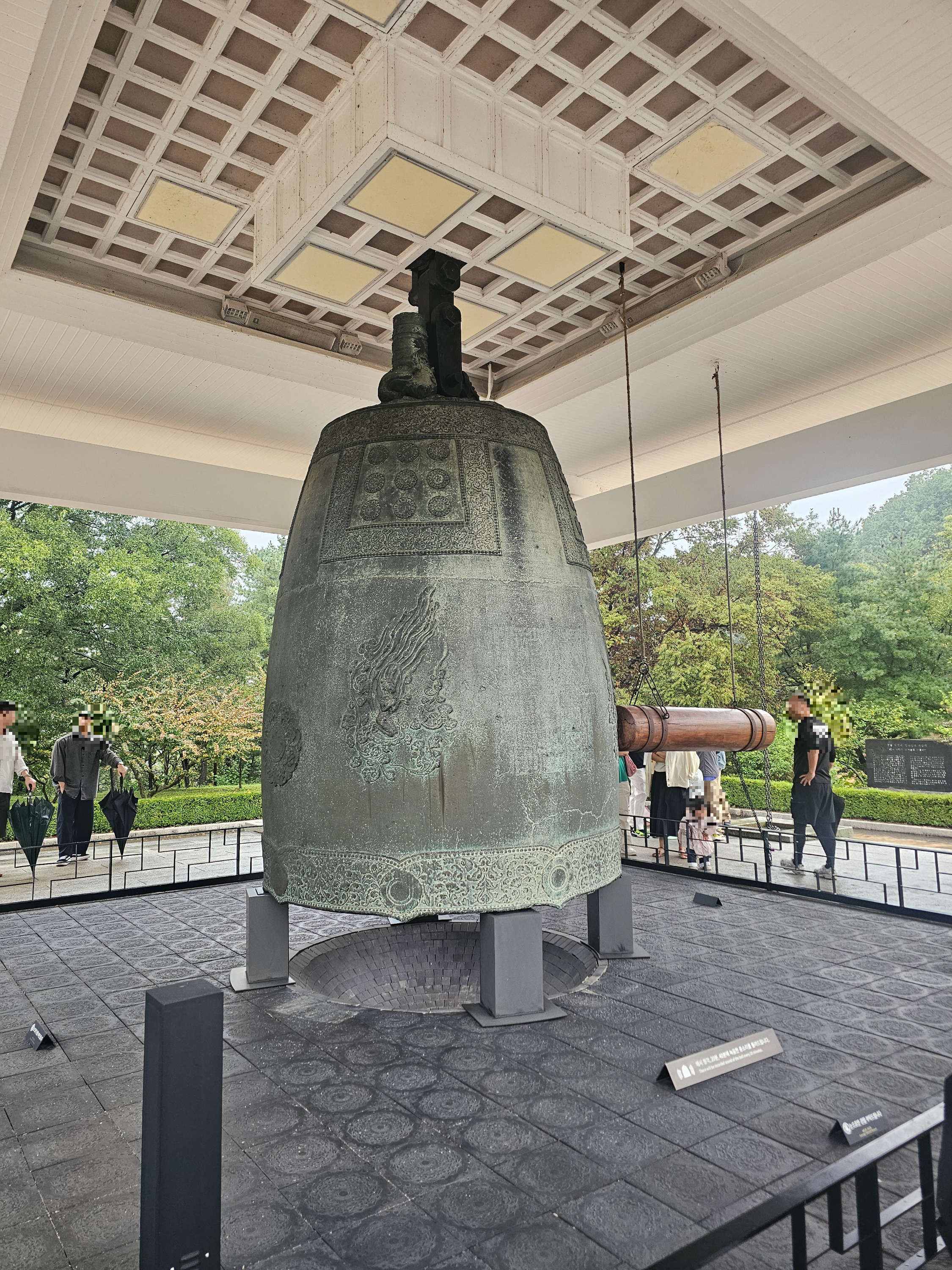 그 뒤 경주박물관이 신축 이전됨에 따라 1975년에 국립경주박물관 경내로 이전되어 지금까지 전시되고 있습니다. 직접적인 타종은 거의 하지 않는데, 지금은 매시간 정각, 20분, 40분에 녹음된 타종 소리를 들을 수 있어요.