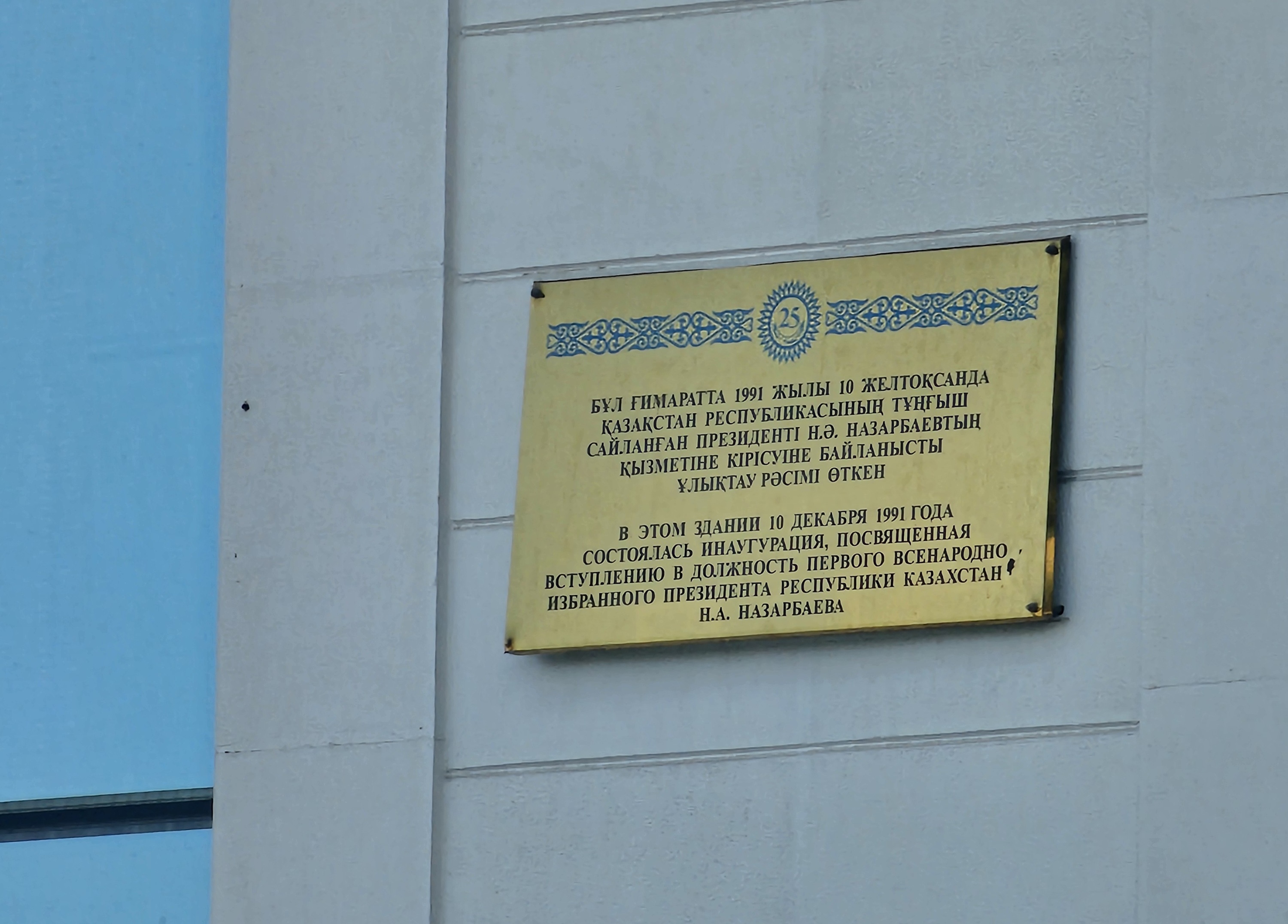 입구의 명판을 보니 이 공화국궁전(Дворец Республики)에서 카자흐스탄의 첫 번째 선출 대통령 Н.А. 나자르바예프(Н.А. НАЗАРБАЕВ, 1940-)의 취임식도 열렸다고 합니다.