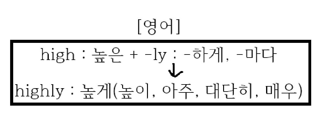 형용사 high(높은)에 '~하게, ~마다'라는 뜻의 부사화 접미사 -ly가 붙어 만들어져 부사 highly가 형성됩니다.