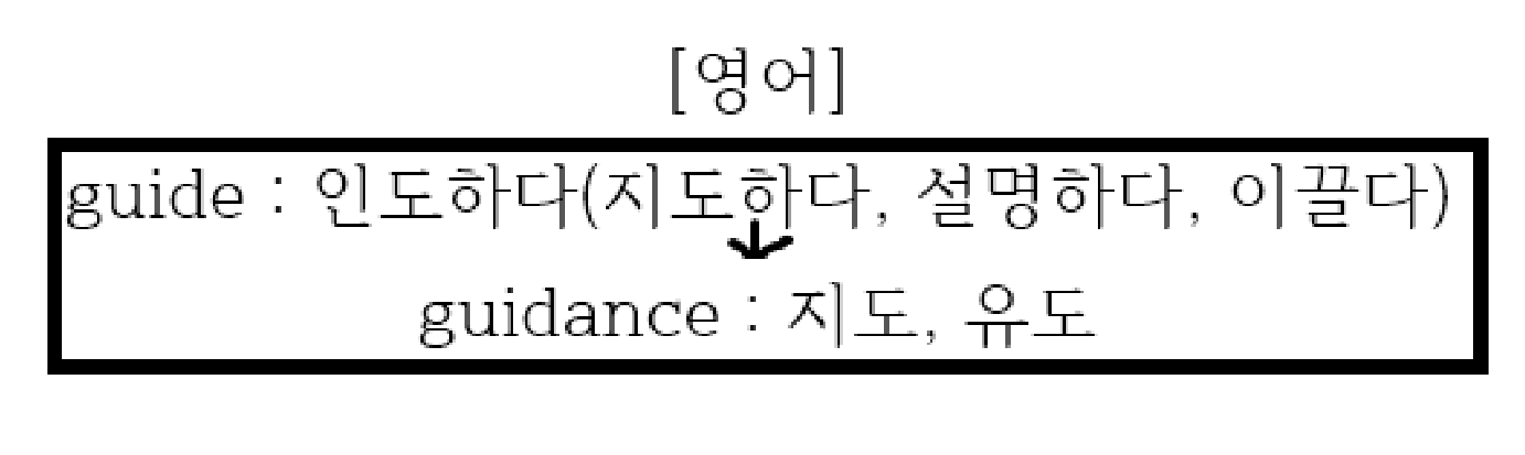 '인도하다(지도하다, 설명하다, 이끌다)'라는 뜻의 영어 동사 guide에 명사화 접미사 -ance가 붙어서 guidance가 유래했습니다.