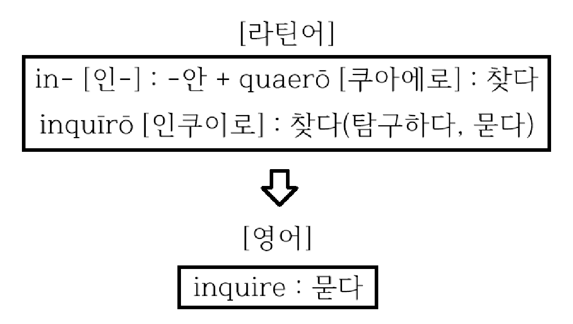 '~안으로 (파고들어) 찾다'라는 근본적인 뜻을 가지는 inquire은 '안을 들여다보며 찾다->안을 들여다보며 묻다'라는 뜻으로 쓰이게 됩니다.