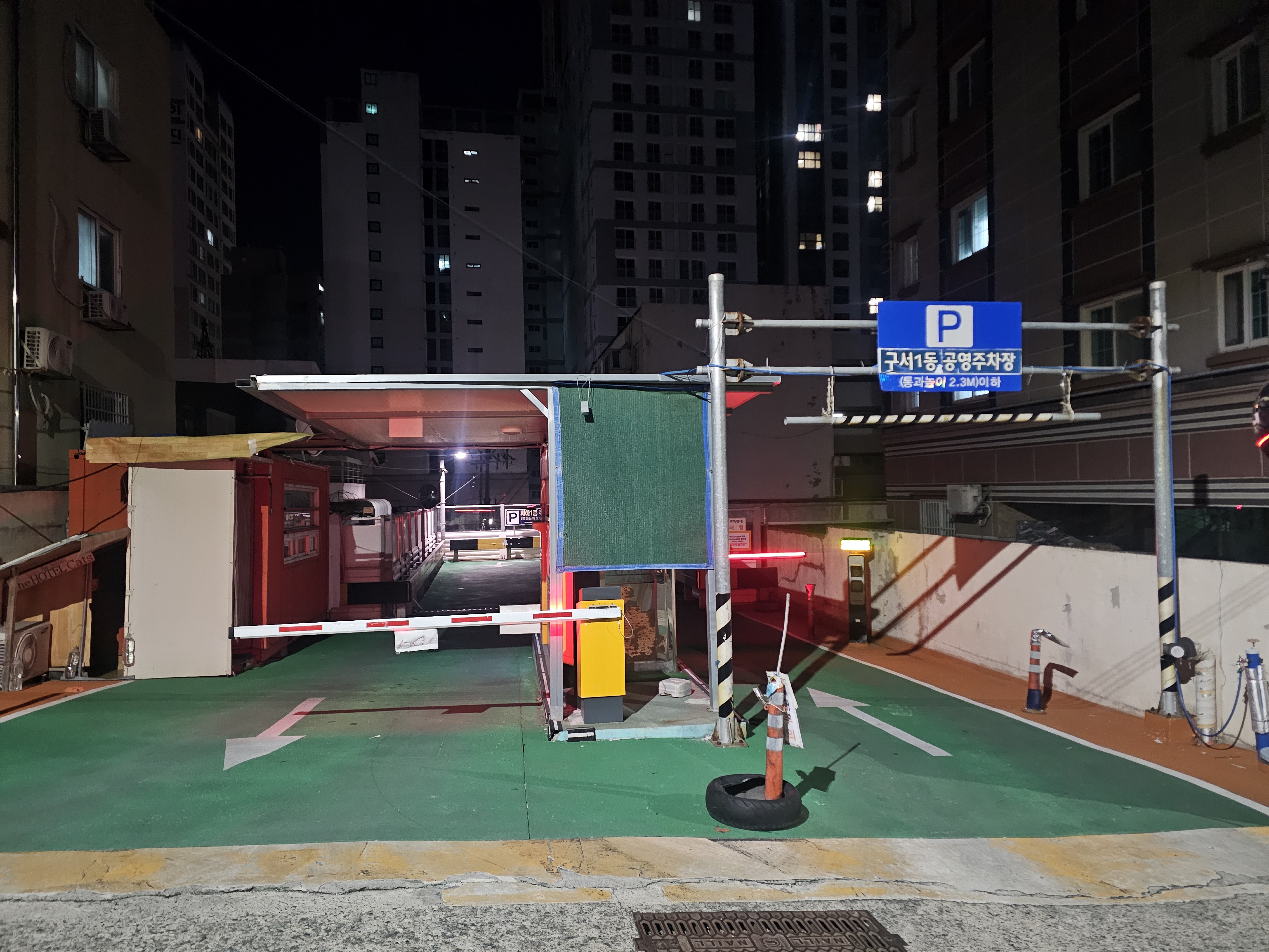 이곳은 부산 금정구 구서동 구서시장 뒷편 골목에 입구가 있는 24시간 운영되는 카드 전용 주차장 구서1동공영주차장입니다.