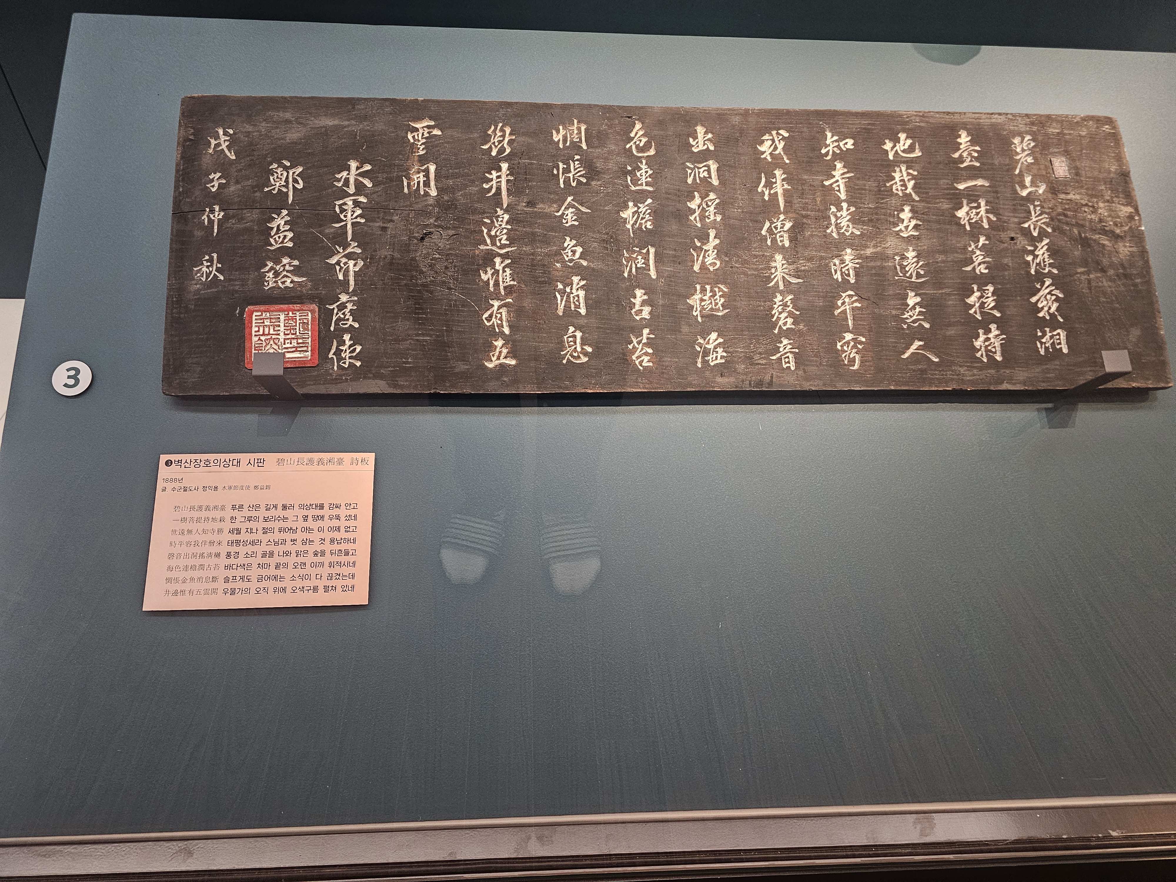 1888년 수군절도사 정익용이 쓴 <벽산장호의상대>라는 시의 시판의 내용은 아래와 같습니다.