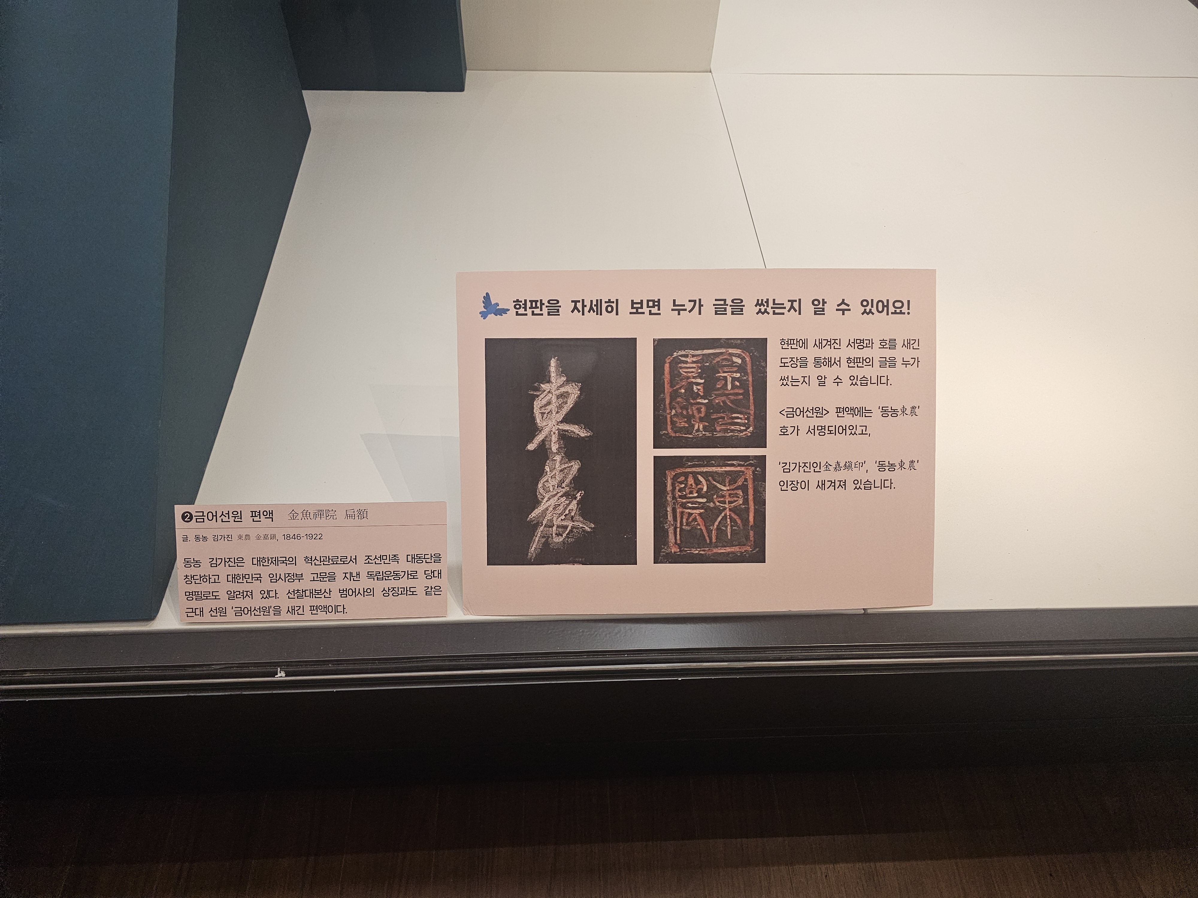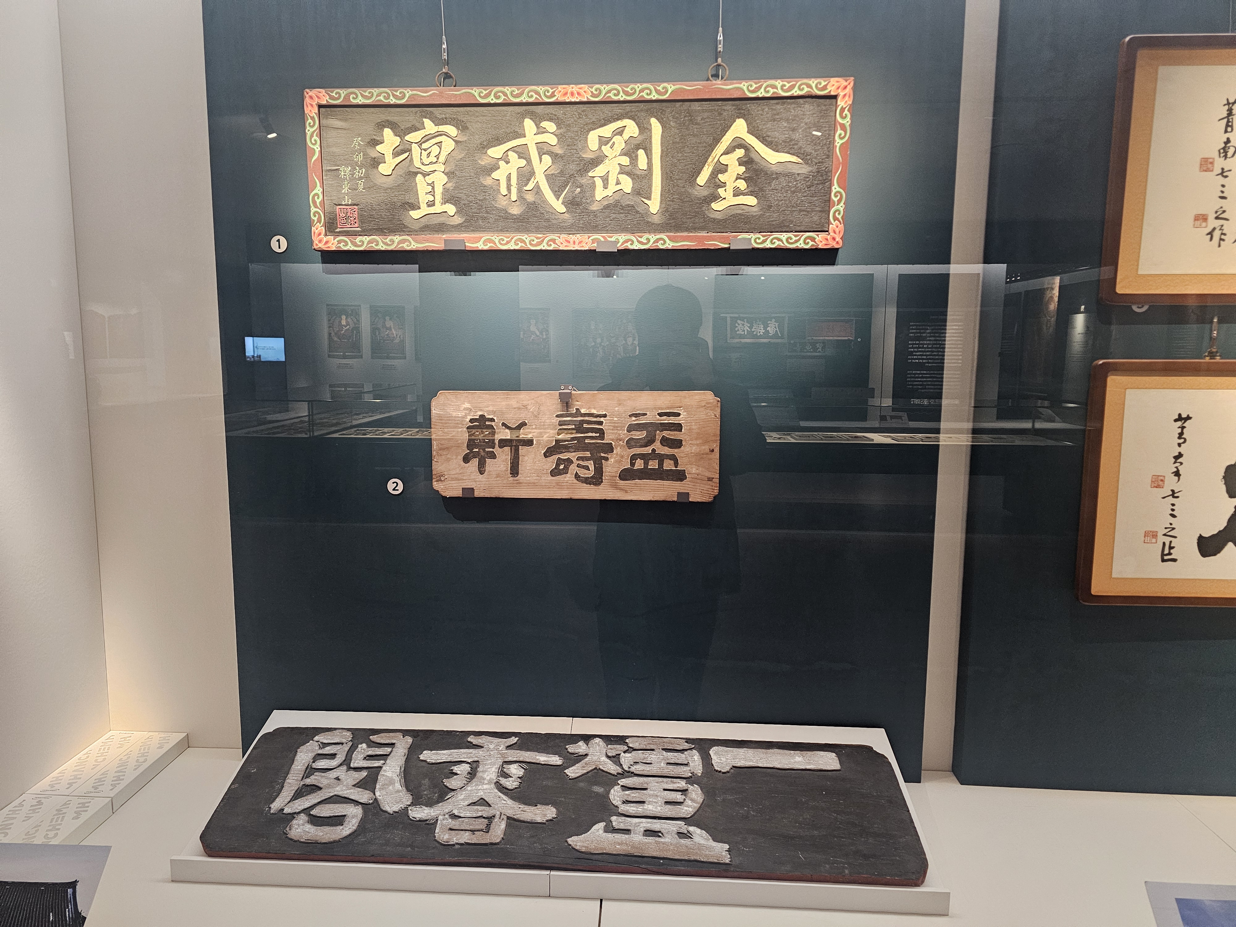 동산당 해일이 쓰고 혜명당 무진장 스님이 새긴 <금강계단 편액(1963)>, 그리고 <익수헌 편액>과 추사 김정희가 쓴 <일로향각 편액>도 볼 수 있습니다. 그 옆에 <육화행료 편액>과 <포덕섭중 편액>도 볼 수 있죠.