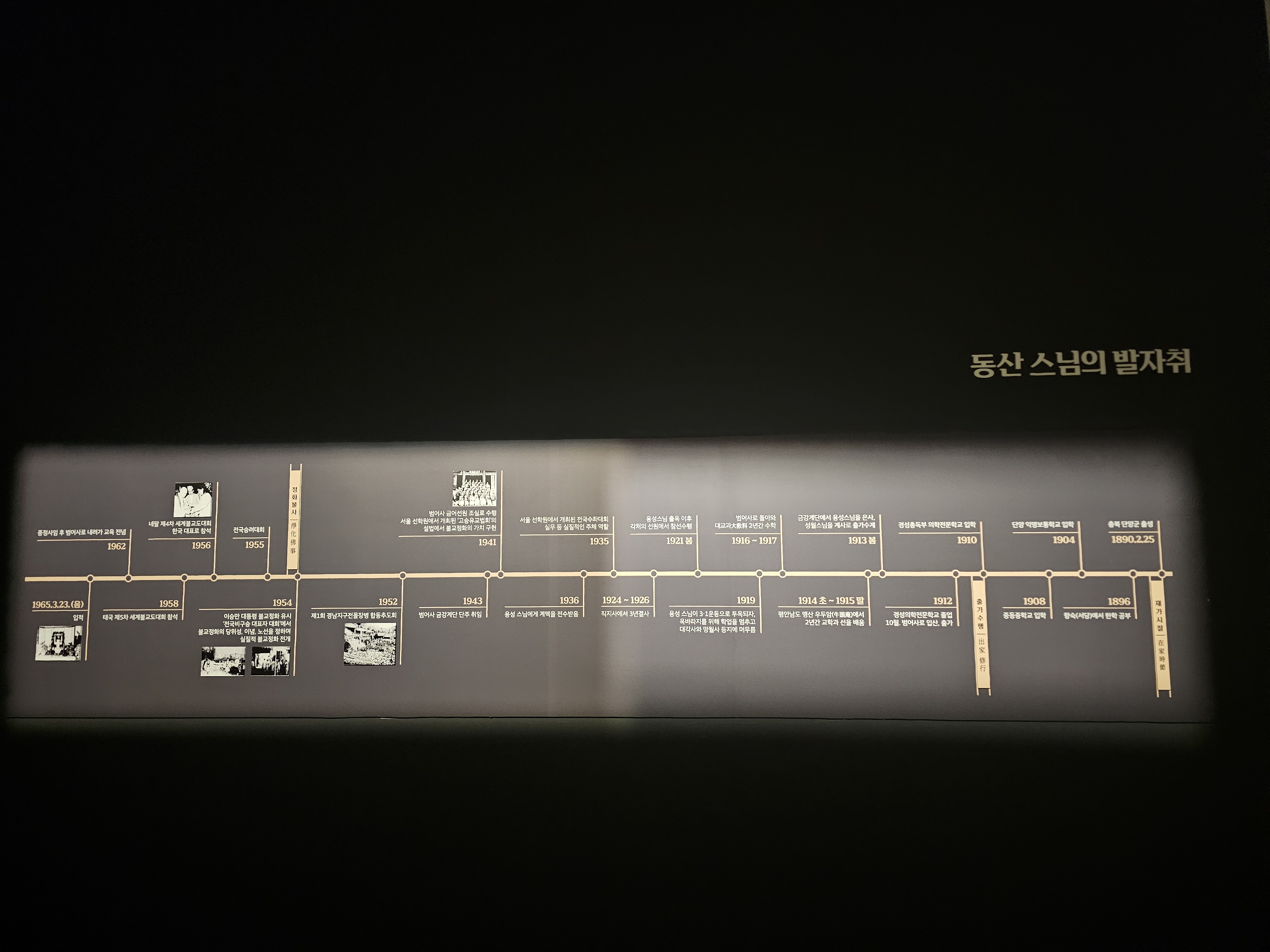 그 다음으로 동산 스님의 발자취를 볼 수 있습니다.