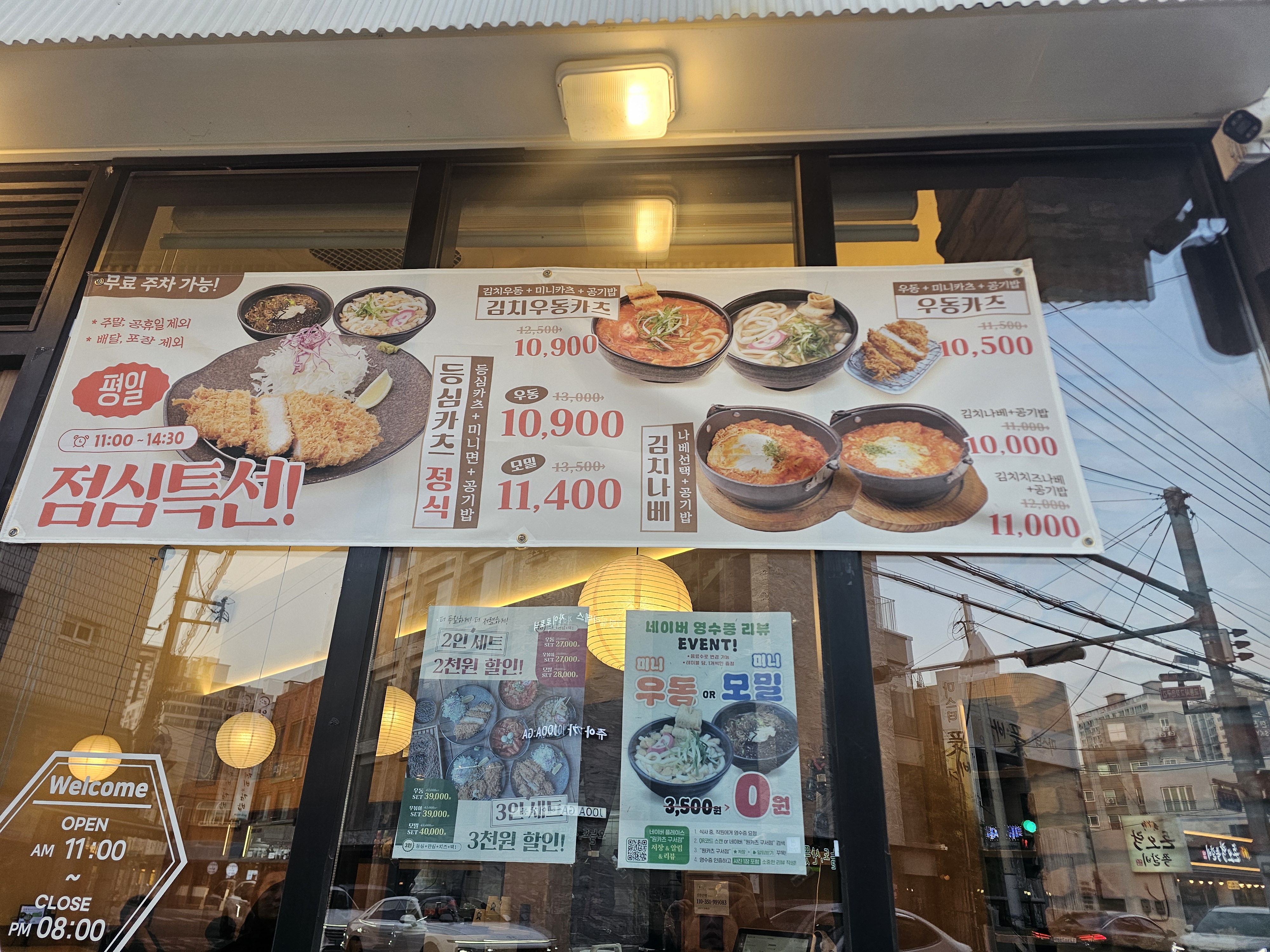 현재 네이버 영수증 리뷰 이벤트로 미니우동 또는 미니모밀을 0원에 즐길 수 있습니다. 또 점심시간에는 점심특선 할인도 진행 중이라 가성비 좋은 식사가 가능하구요. 2인세트와 3인세트도 할인하는 중입니다~