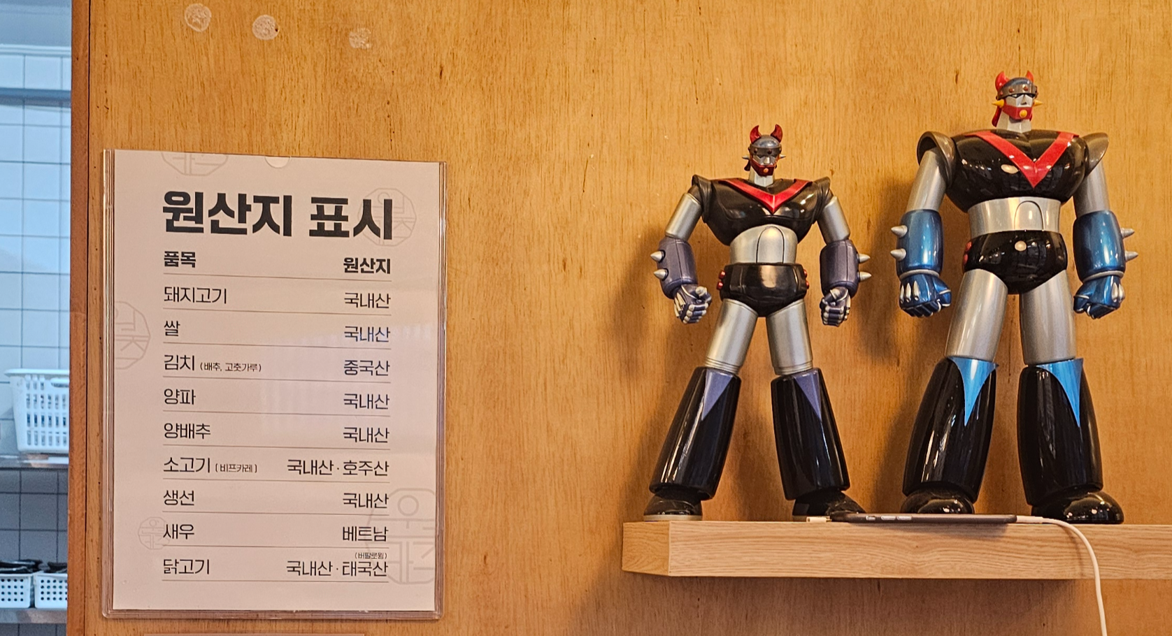 | 국내산 : 돼지고기, 쌀, 양파, 양배추, 소고기, 생선, 닭고기 중국산 : 김치 호주산 : 소고기 베트남산 : 새우 태국산 : 닭고기 |