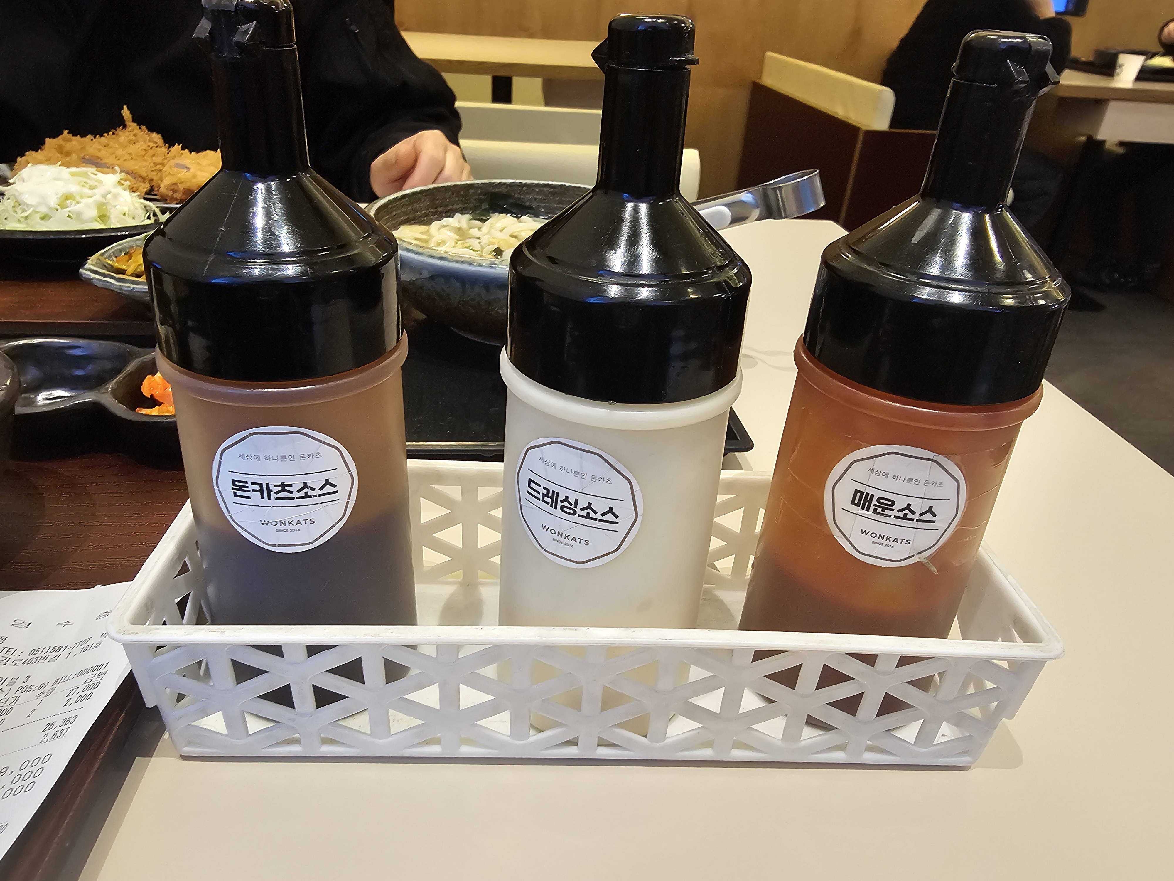 소스는 돈카츠소스, 드레싱소스, 매운소스까지 다양하게 제공되어 취향에 맞게 즐길 수 있었어요.