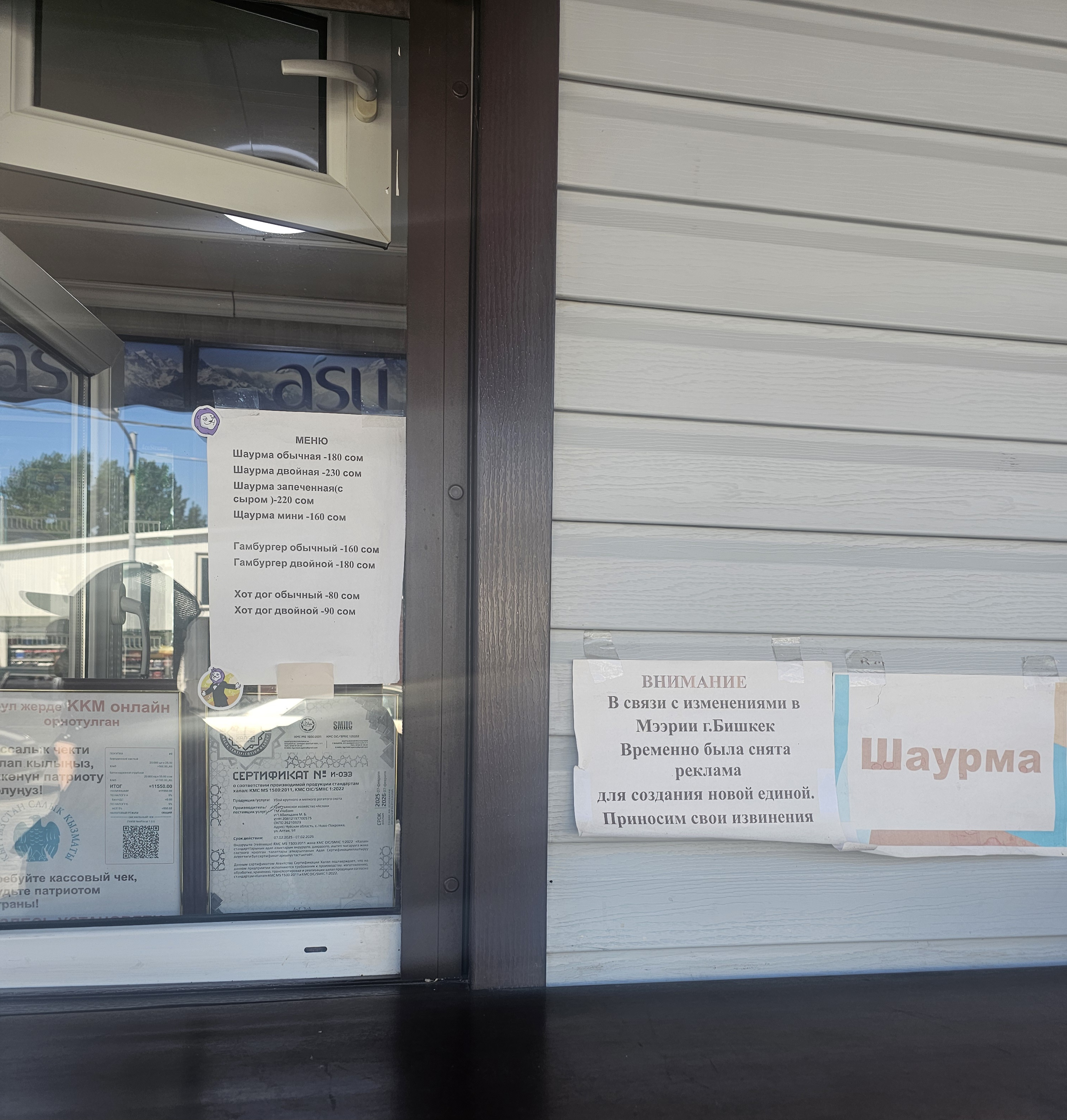 샤우르마 가격은 알라메딘 시장 부근이라서 그런가 시내보다 10-15솜 정도 더 싼 편입니다.