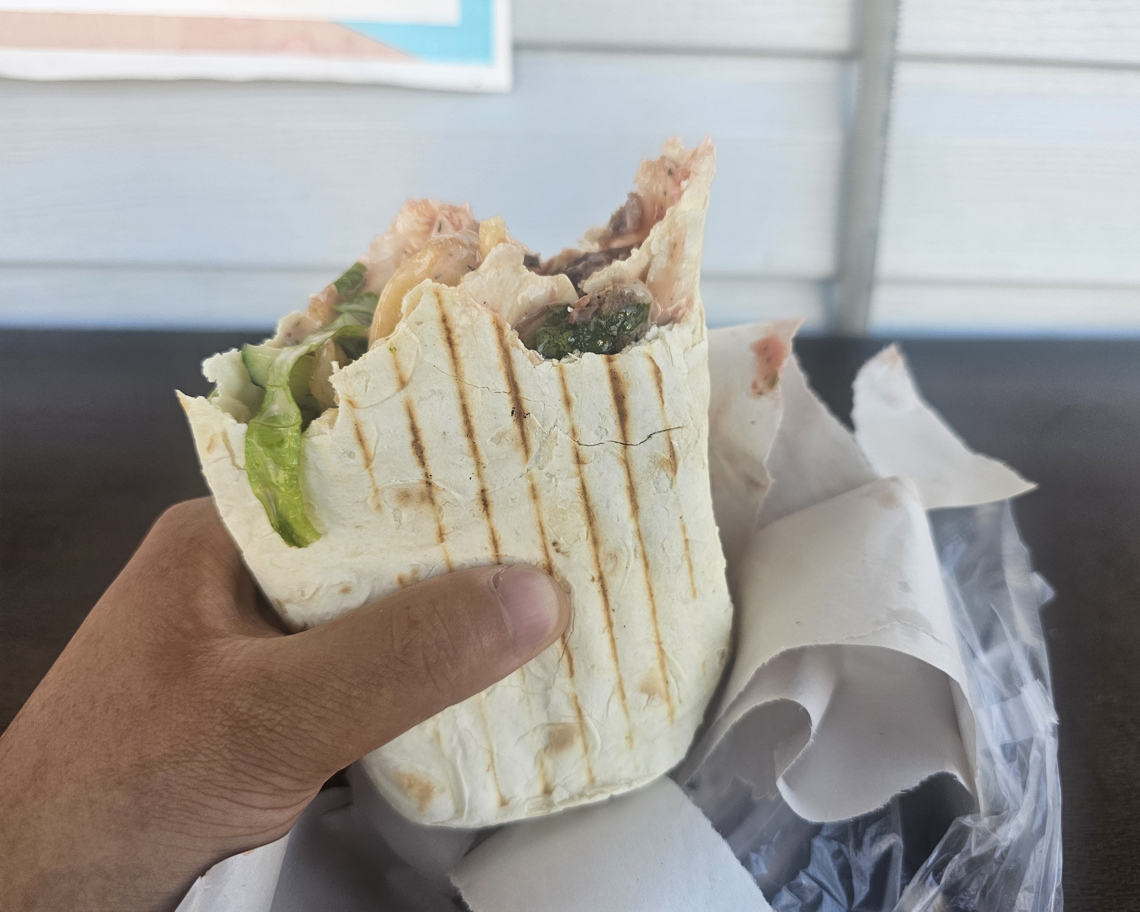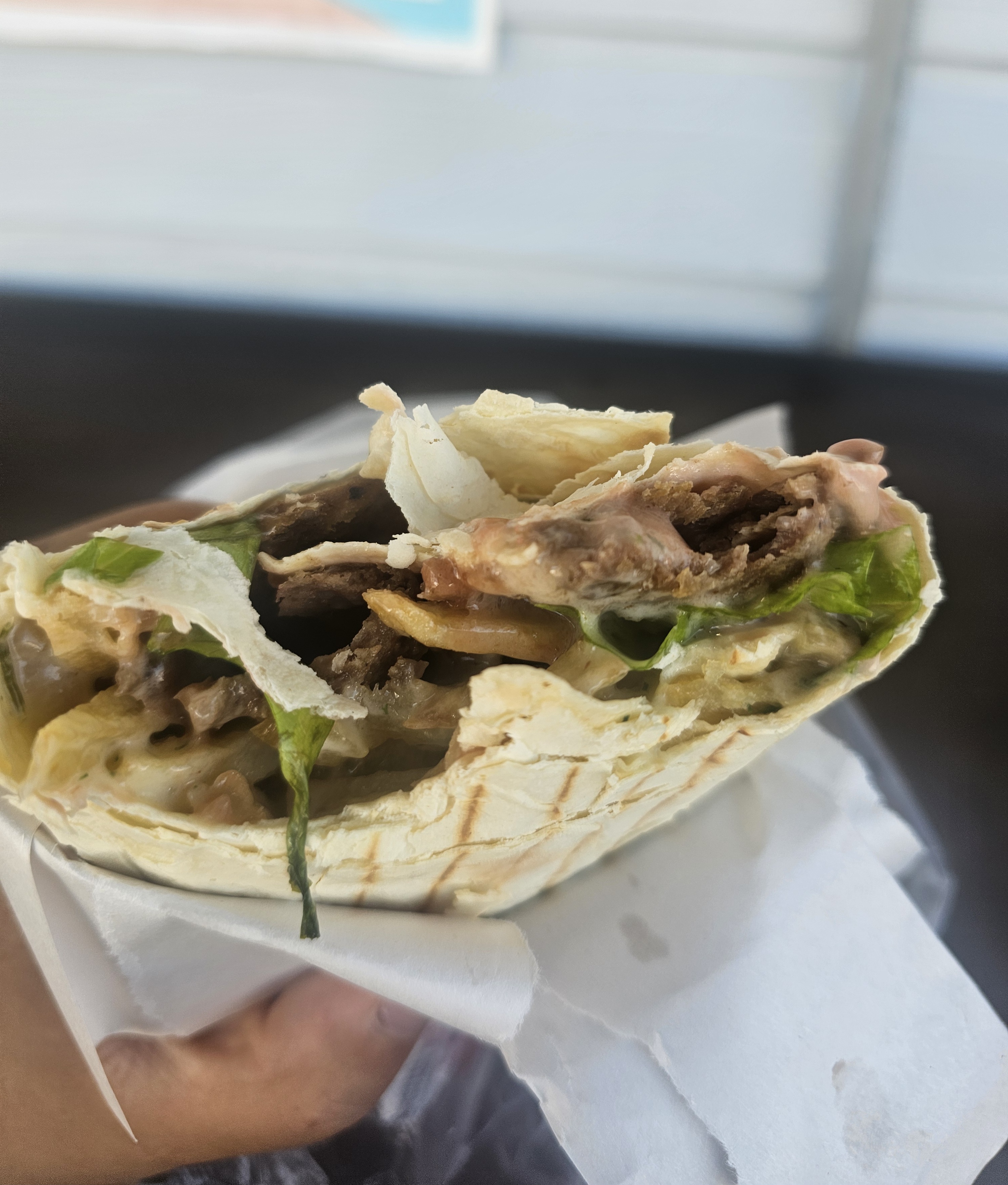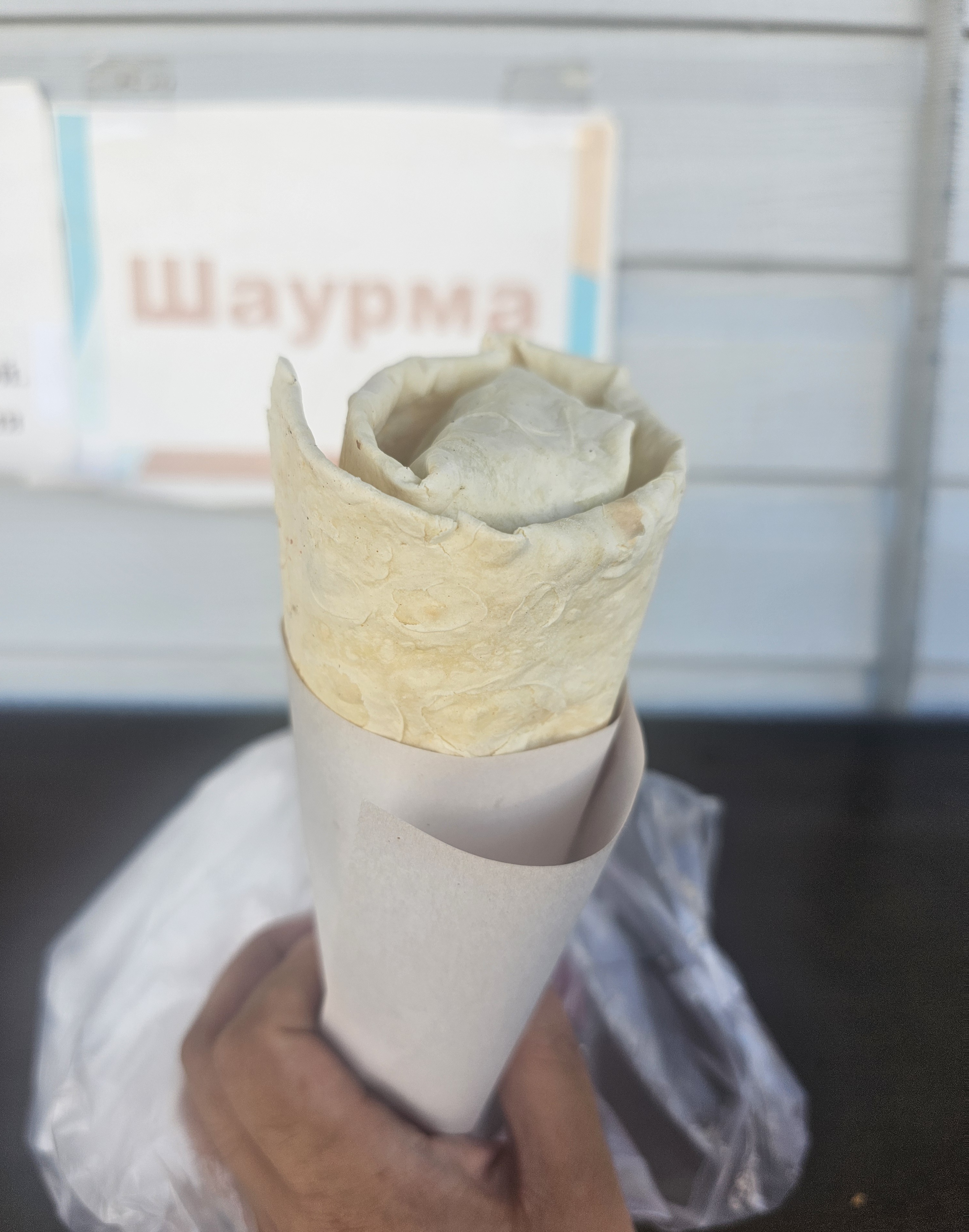 샤우르마(보통)(180솜)을 시켰는데요. 익숙한 샤우르마 맛입니다~ 안에 고기가 얇아서 씹어 먹기 좋은 편이었던 걸로 기억해요~