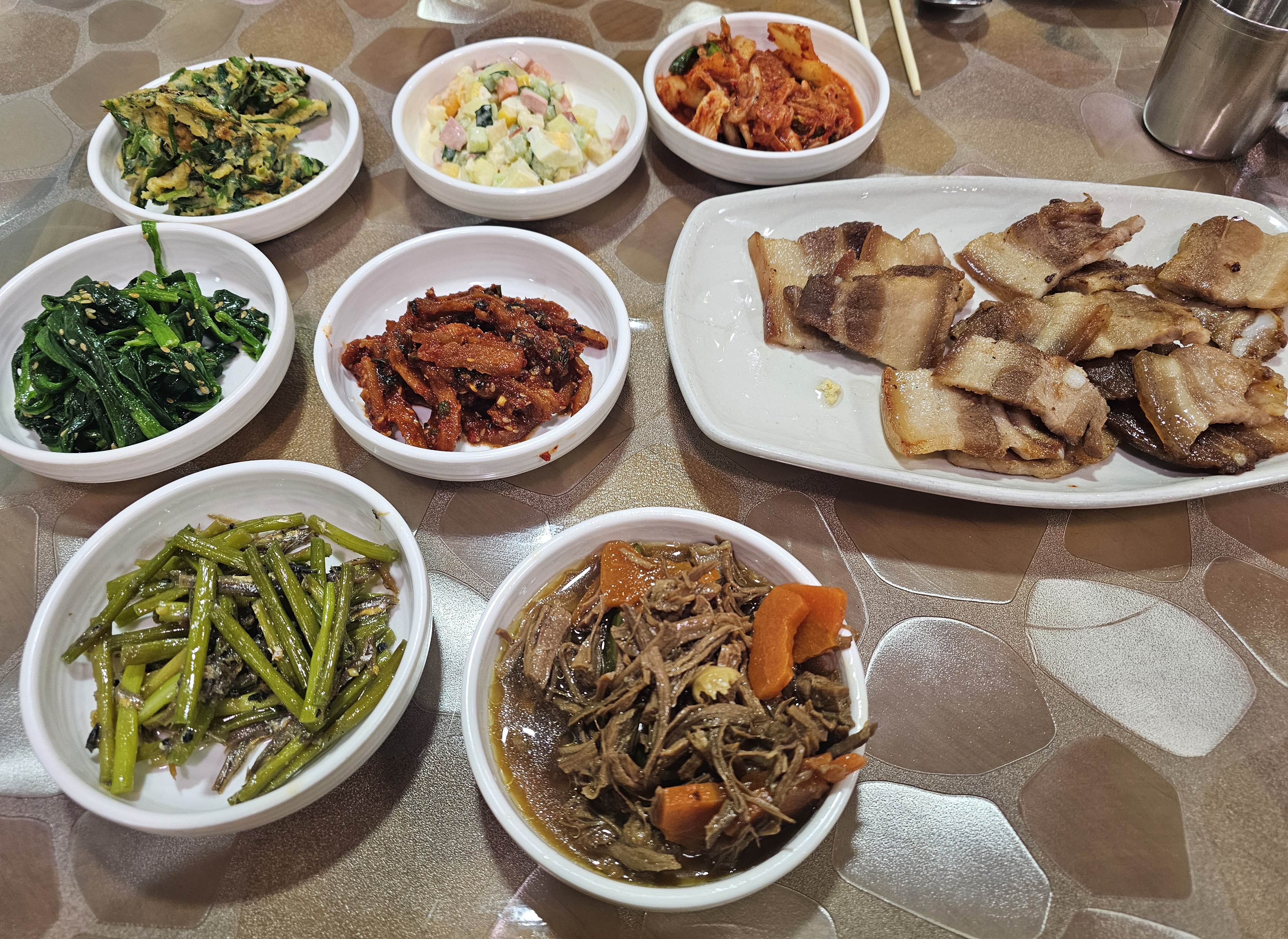 저와 같이 온 형은 국밥을 시켰습니다. 밑반찬이 정말 한국 식당의 느낌을 잘 느낄 수 있는 그런 곳이었습니다. 같이 온 형이 이곳 사장님을 잘 알고 있어서 서비스로 같이 먹으라고 삼겹살도 주셨어요!! 진짜 감사했습니다! 타국에서 이렇게 따뜻한 한국인의 정을 느낄 수 있어서 행복했어요~