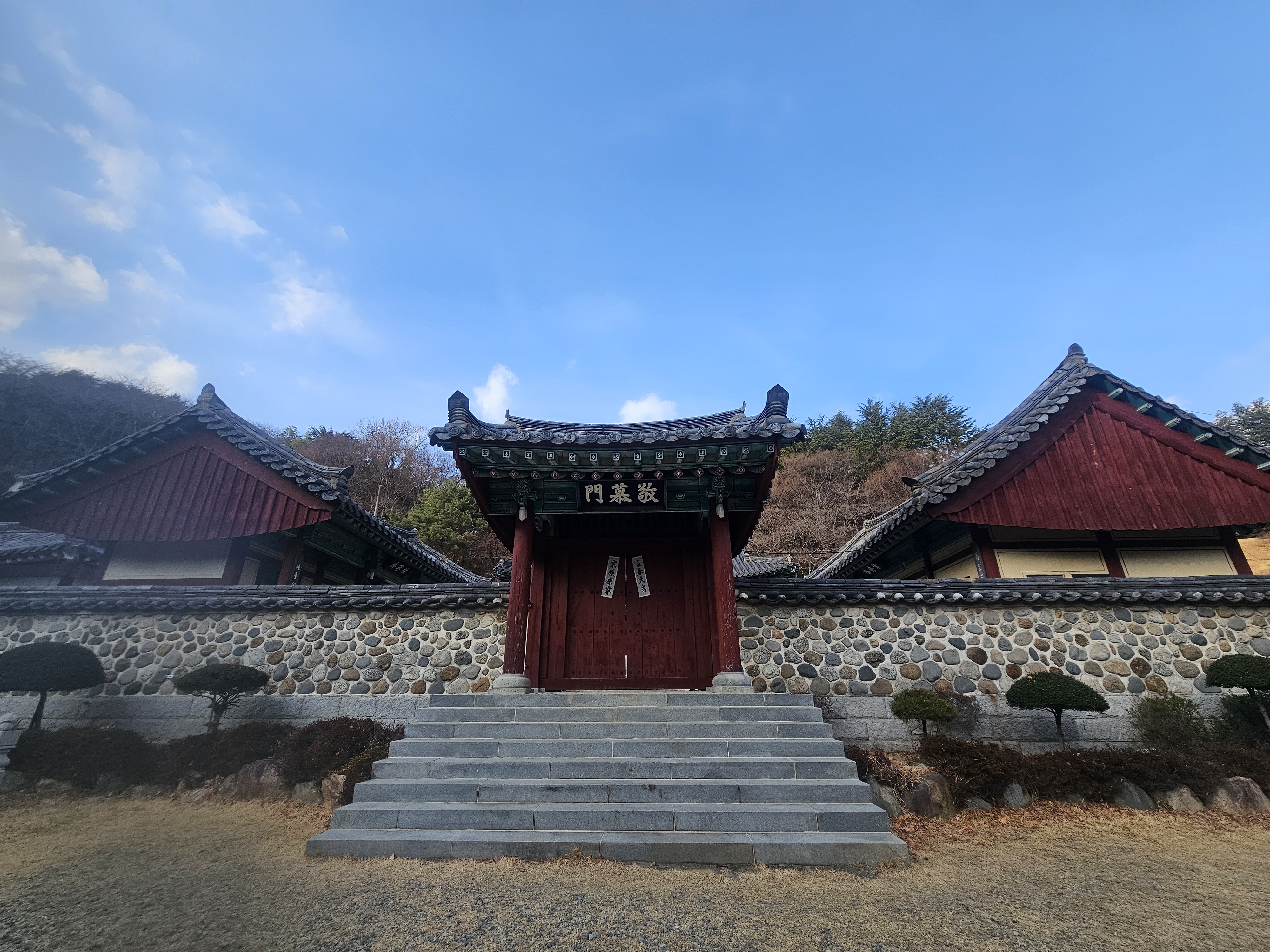 옆으로 돌아가면 동문인 감로문(感露門)이 보이고, 그 뒤로 본당 추원사의 옆 모습도 볼 수 있습니다.