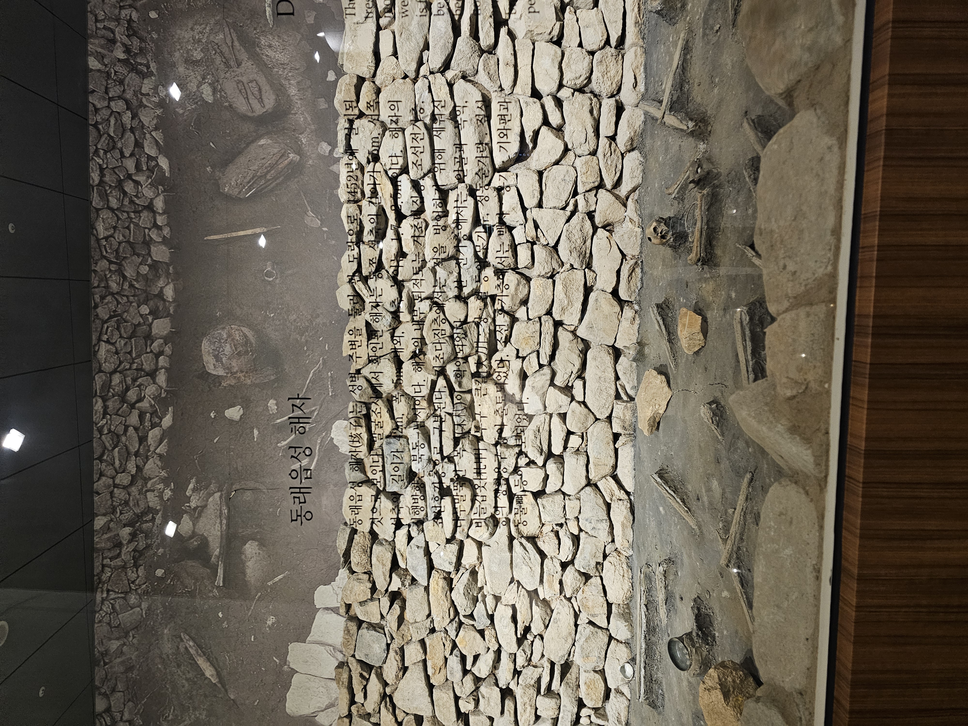 수안역에서 에스컬레이터를 타고 내려가는 곳에 표를 끊고 앞을 바라보면, '동래읍성 해자 단면'이 보입니다. 동래읍성 해자 축조 단면 동래읍성(東萊邑城) 해자(垓子)는 체성(體城)에서 약 30m