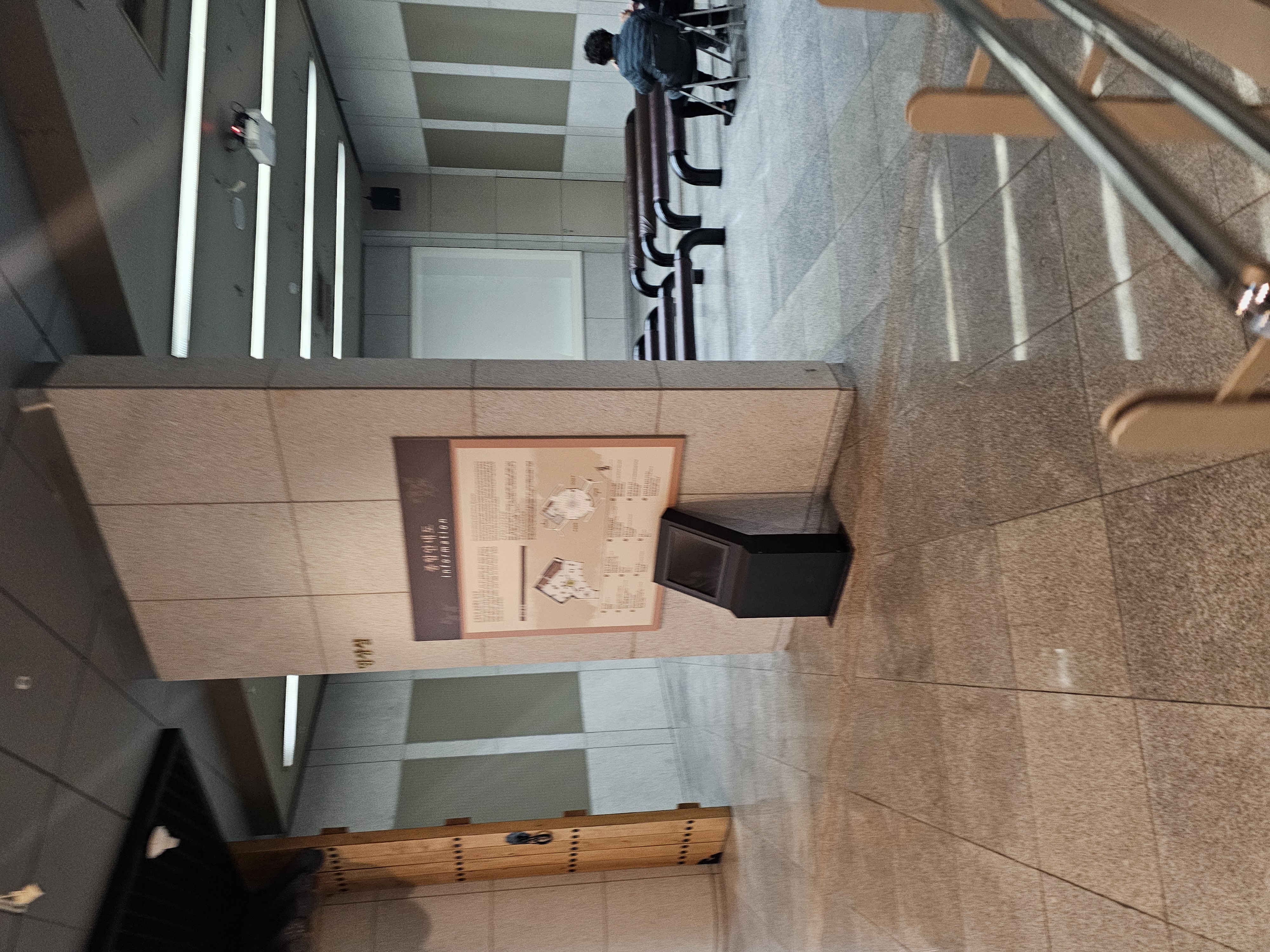입구 왼편에는 영상실과 종합안내도가 있고, 입구 오른편에는 포토존이 있습니다.