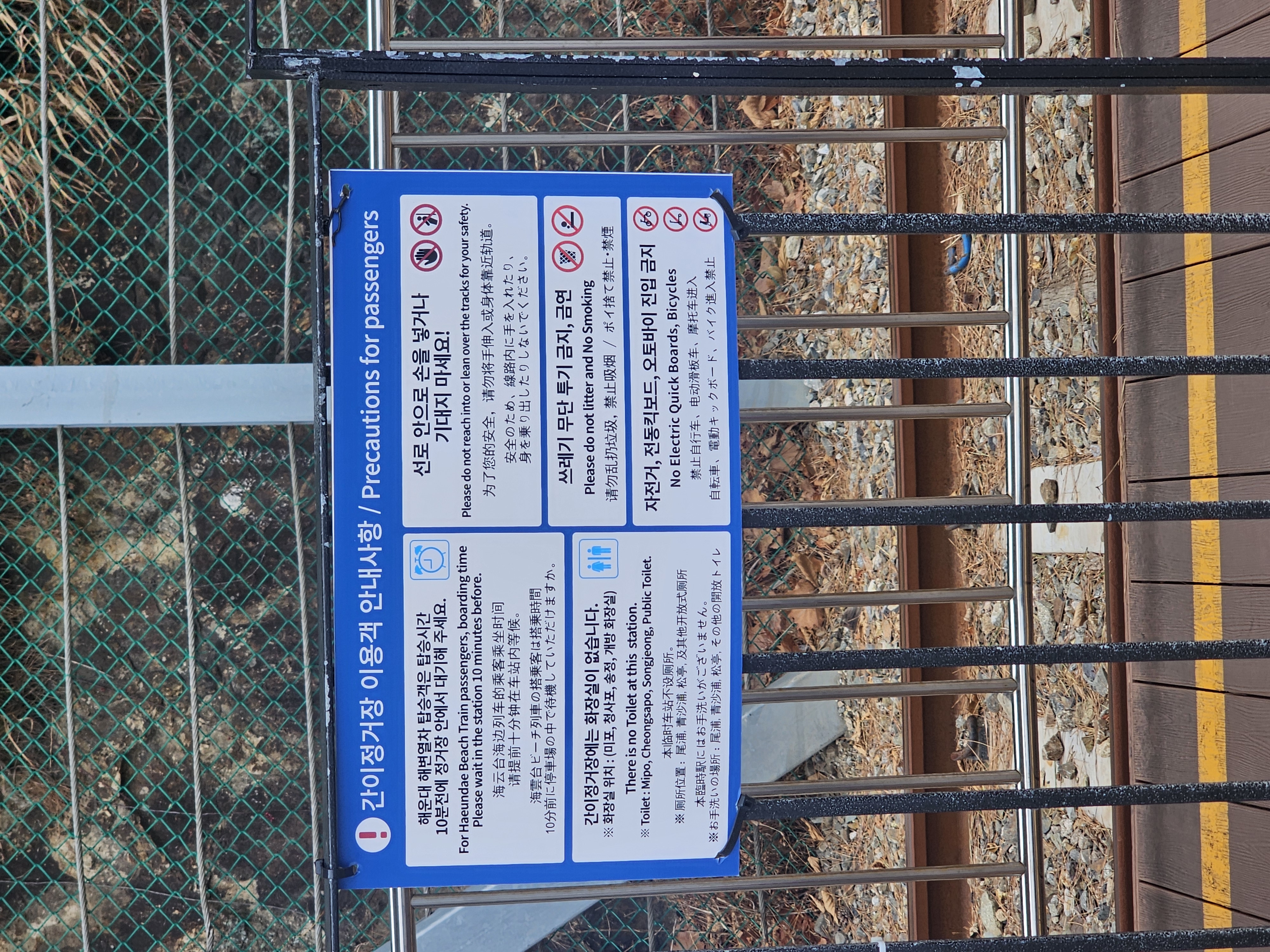이 간이정거장은 청사포 정거장으로부터 0.6km, 구덕포 간이 정거장으로부터 0.5km 거리에 위치합니다. 이곳엔 무인발매기와 개찰구, 단선승강장이 있는데요. 직원이 검표를 하는 것으로 보입니다.