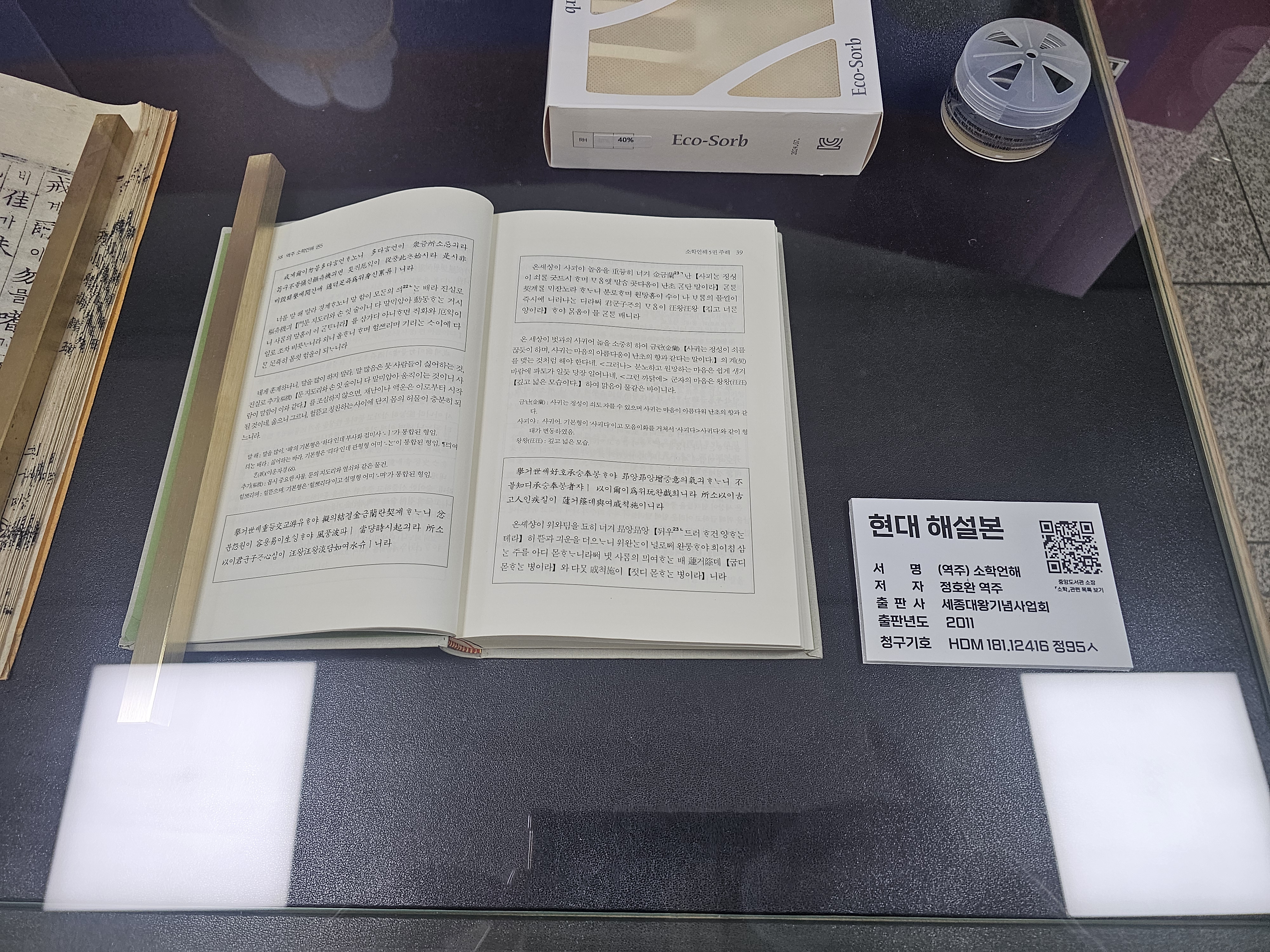 유학이 중심 정치 사상의 위치를 넘겨준 현대 대한민국에서도 그 역사가 이어져 오는데요. 2011년 세종대왕기념사업회 출판사에서 정호완이 역주한 <(역주)소학언해(2011)>까지 발간됩니다. 이 흐름을 통해 조선 시대의 유교적 가치관과 생활 규범이 단순히 과거의 유산으로 머무는 것이 아니라, 현대에 이르기까지도 교육과 인성 형성의 중요한 기반으로 재해석되고 계승되고 있음을 확인할 수 있습니다. 특히 한글 번역을 통해 보다 많은 사람들이 쉽게 접근할 수 있게 되었다는 점에서, 시대를 넘어 지식과 예절을 전달하려는 노력의 연속성을 보여준다고 할 수 있습니다.