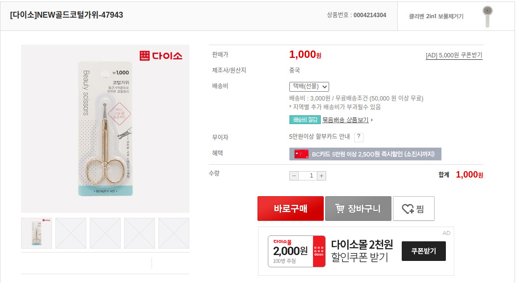 1. 다이소에서 파는 1,000원 코털가위