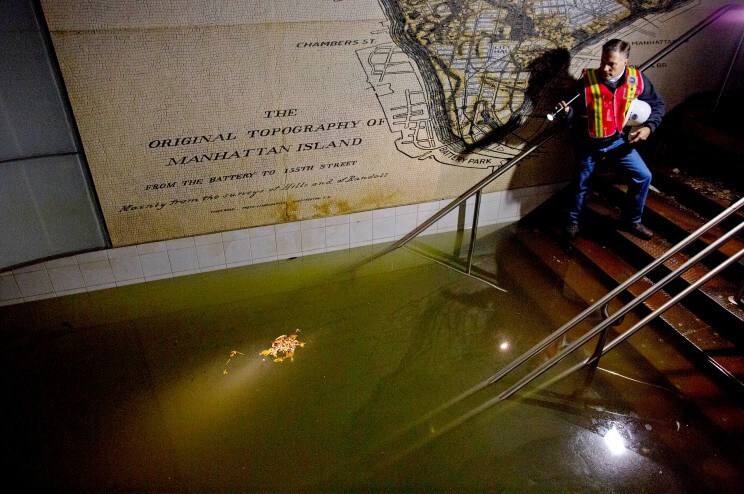 2012년 10월 27일, 주요 항공사들은 뉴욕시의 존 F. 케네디 국제공항과 라과디아 공항, 뉴저지주의 뉴어크 리버티 국제공항을 오가는 모든 항공편을 취소했고, 메트로-노스 철도와 롱아일랜드 철도는 모든 서비스를 일시 중지했다. 허드슨 강을 가로지르는 핵심적인 물류 이동 다리인 태펀지 교(Tappan Zee Bridge)와 브루클린과 맨해튼을 연결하는 브루클린-배터리 터널, 맨해튼과 뉴저지주를 연결하는 홀랜드 터널도 폐쇄되었다. 롱아일랜드의 일부 지역과 뉴욕 주 내의 고도가 낮은 몇몇 지역에 대피령이 내려졌으며,