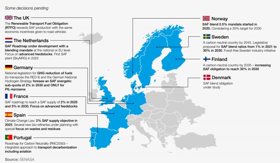 2017년 기준으로 항공 분야는 세계 온실가스 배출의 약 2%를 차지하는 중점 배출원 중 하나이며 국제 사회가 2015년 파리 협약에 명시된 기후 목표를 달성하기 위해선 항공 산업의 저탄소 에너지로의 전환이 실현되어야 한다. 이러한 상황을 극복하기 위해 항공업계에서는 2050년까지 탄소 배출량을 2005년 수준에서 50% 줄이기로 약속했다. 그러기 위해 각종 연구를 통해 저탄소 SAF(지속가능 항공 연료)와 화석 기반 제트 연료를 혼합한 새로운 연료를 만들게 되었다. 이렇게 기존의 화석기반 항공 연료(제트연료, 항공가솔린)에 대한 대안으로 나타난 바이오매스(biomass)를 액체로 만들어 사용하는 항공 연료를 항공 바이오연료라고 한다. 참고로 이런 항공 바이오연료를 포함한 지속가능한 항공 연료를 SAT(Sustainable Aviation Fuel)라고 부른다.